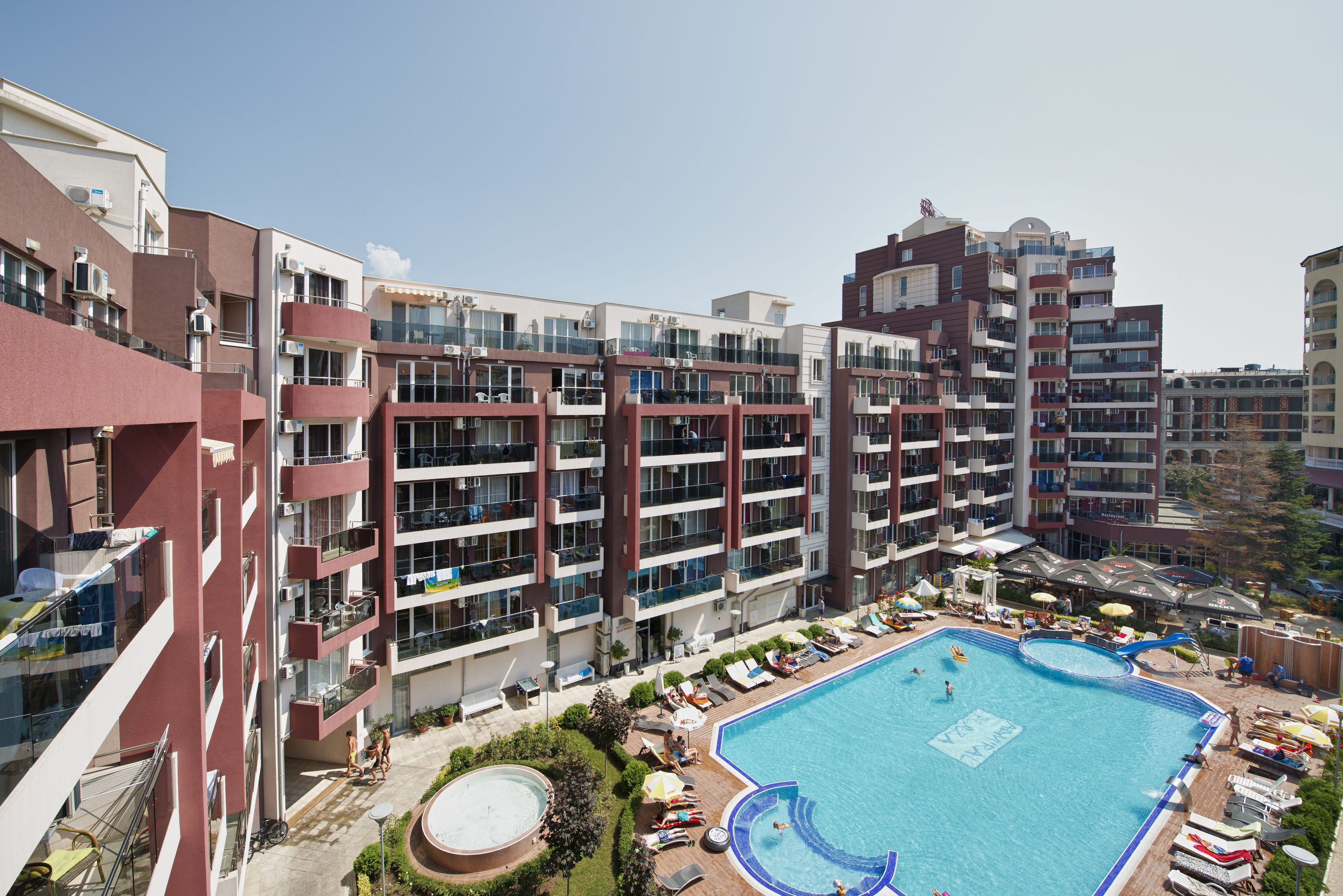 Хотел Адмирал Плаза се намира в сърцето на най-големия български морски курорт – Слънчев бряг. Прекрасен плаж и главната улица на курорта са само на 100 метра от хотела. В близост гостите могат да намерят много ресторанти, барове, нощни клубове, казина, водни паркове и много други дейности, които ще направят изживяването им в Слънчев бряг незабравимо.