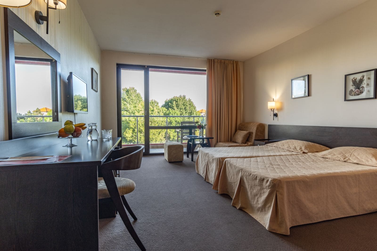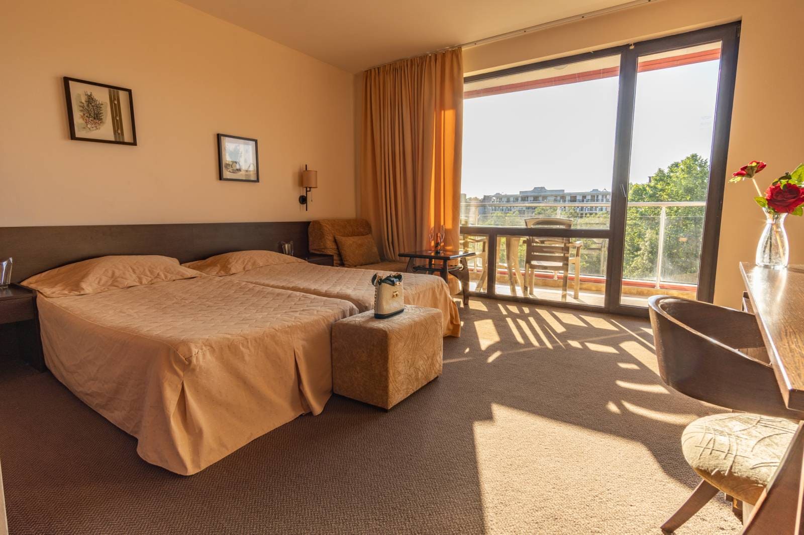 Хотелът се намира на първа линия, разполага с два басейна с детска секция, детска площадка, кафене и ресторант. Фитнес, Чадъри, Шезлонги или плажни столове, Масаж, Фитнес център, Сауна