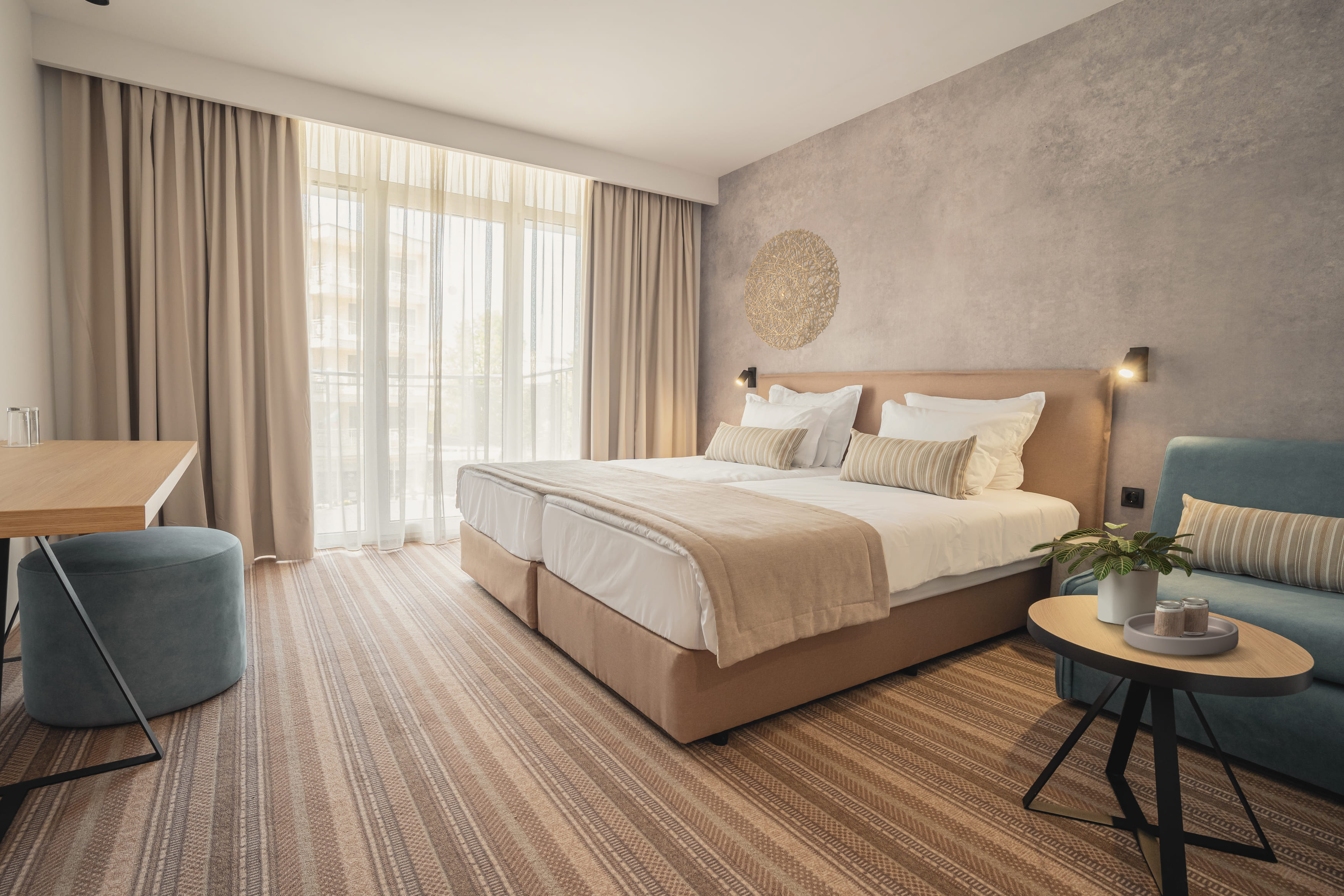 Последно реновиран през 2022 г. Хотелът разполага с 148 стаи. 130 двойни стаи, 7 студиа и 11 апартамента, един от които е ВИП. Стаите се отличават с елегантен стил, комфорт и функционалност.