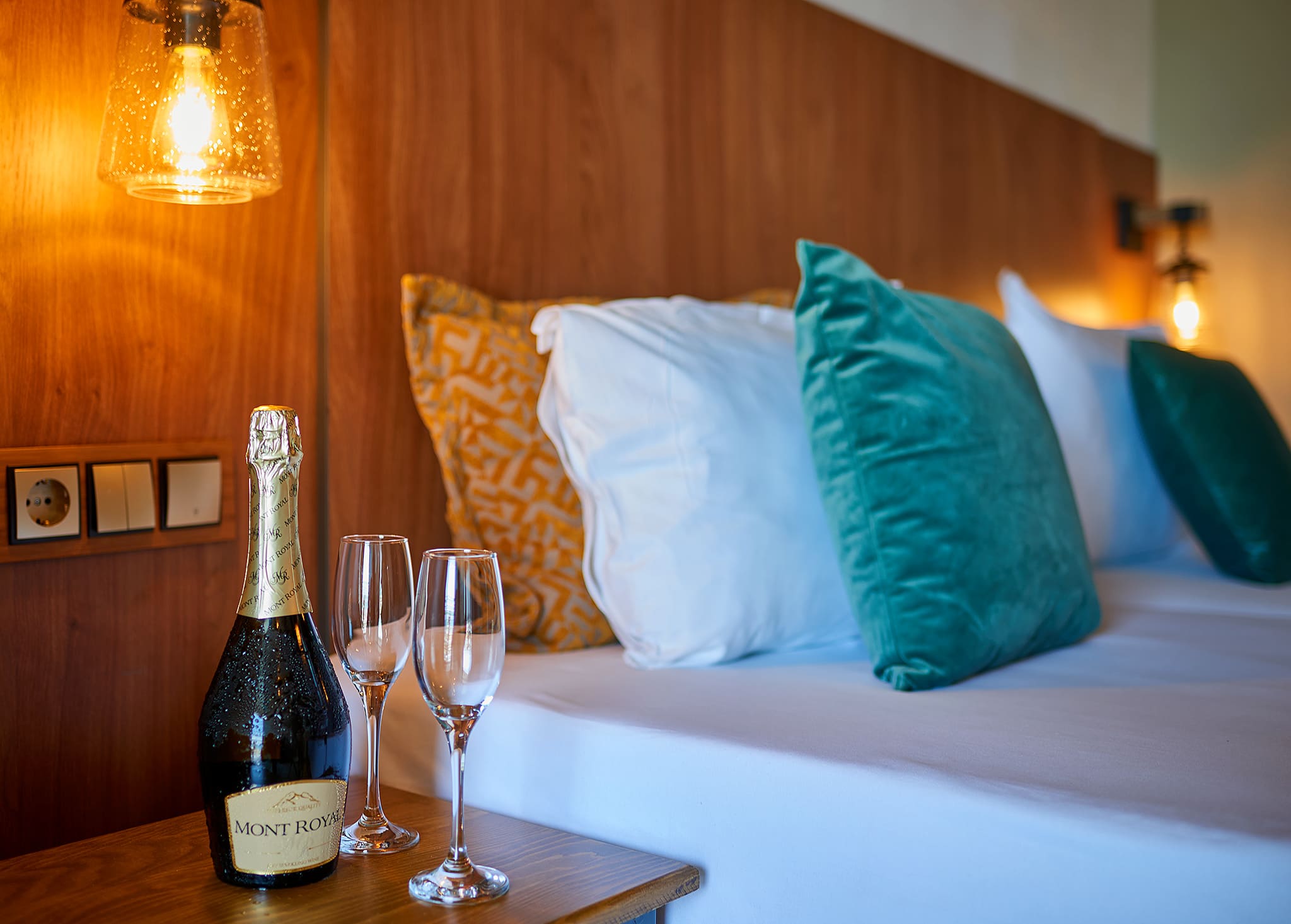 254 двойни стаи със страничен изглед море- макс. 3 души/ 2 единични легла, мокет/ламинат, телефон, централна климатизация, сешоар, кабелна LCD телевизия, мини бар, балкон, баня с душ, Wi-Fi. Допълнително легло /разтегателен диван/ 16 Фамилни стаи - 2+2/2 Двойни стаи с междинна врата, мокет, телефон, централна климатизация, сешоар, кабелна LCD телевизия, мини-бар, балкон, баня с душ, Wi-Fi.