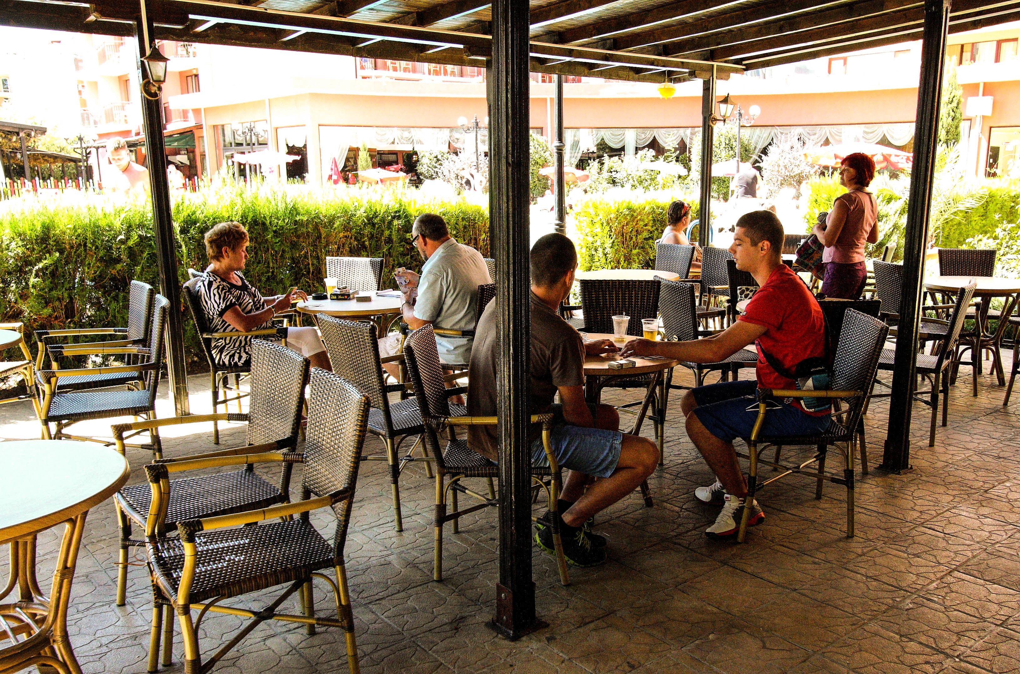 Ресторантът на хотела е с капацитет от 370 места вътре и 150 места на сенчеста тераса за топлите летни вечери, с приятна гледка към осветения открит плувен басейн. В ресторант можете да се насладите на прясно приготвени ястия от българската и международната кухня. Различни тематични вечери, пица бар и "show cooking". Кафе-барът, разполагащ с тераса до басейна (капацитет 30 места), е идеалното място за освежаваща напитка. На Ваше разположение са разнообразни топли и студени напитки, местни алкохолни и безалкохолни напитки, вино и бира. Между основните хранения, тук се сервират солени и сладки печива и сладолед.