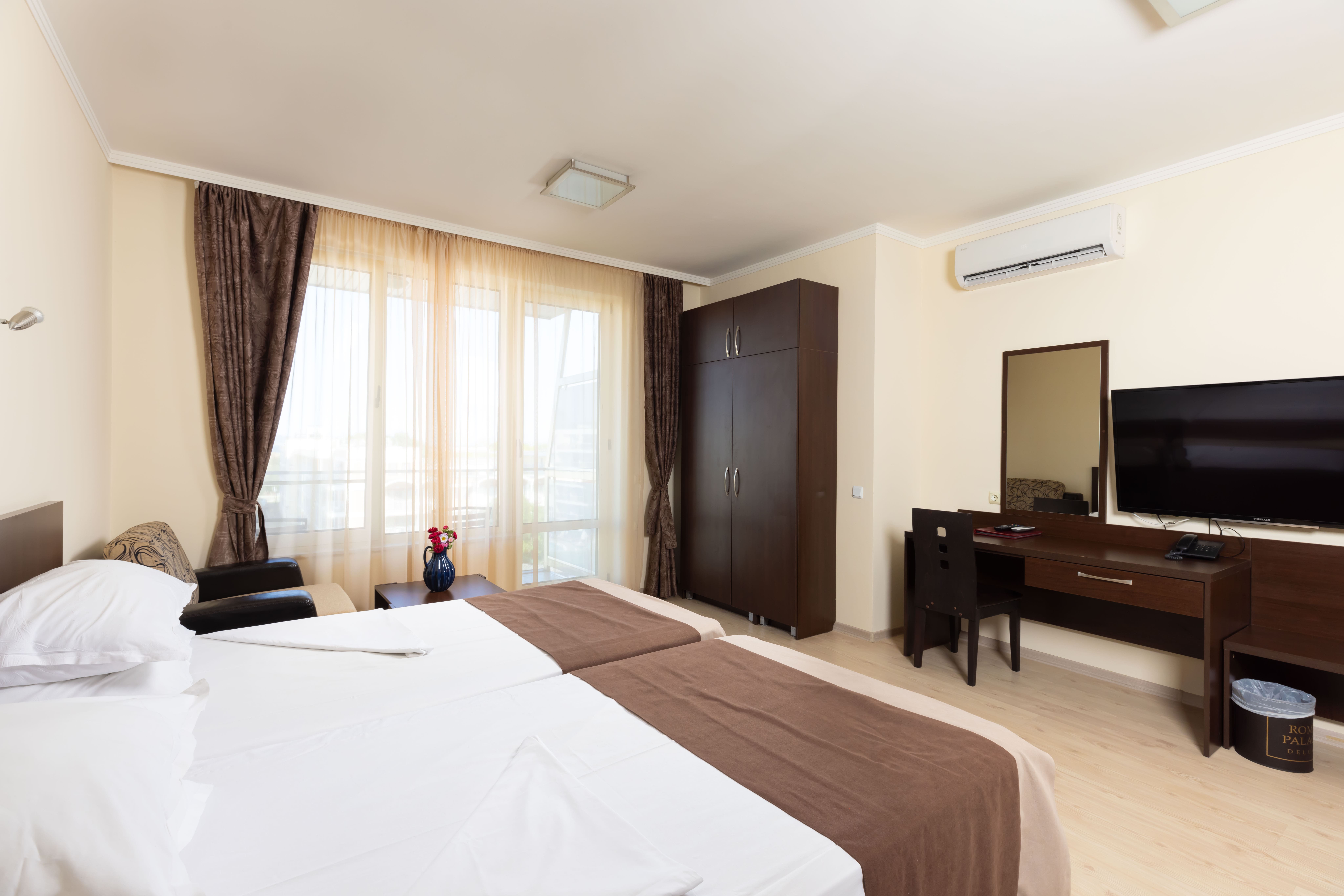 Рим Палас Делукс е нов хотел в курорта Слънчев бряг. Хотелът се намира в източната част на курорта на около 150 метра от плажа и на около километър и половина от центъра на Слънчев бряг.