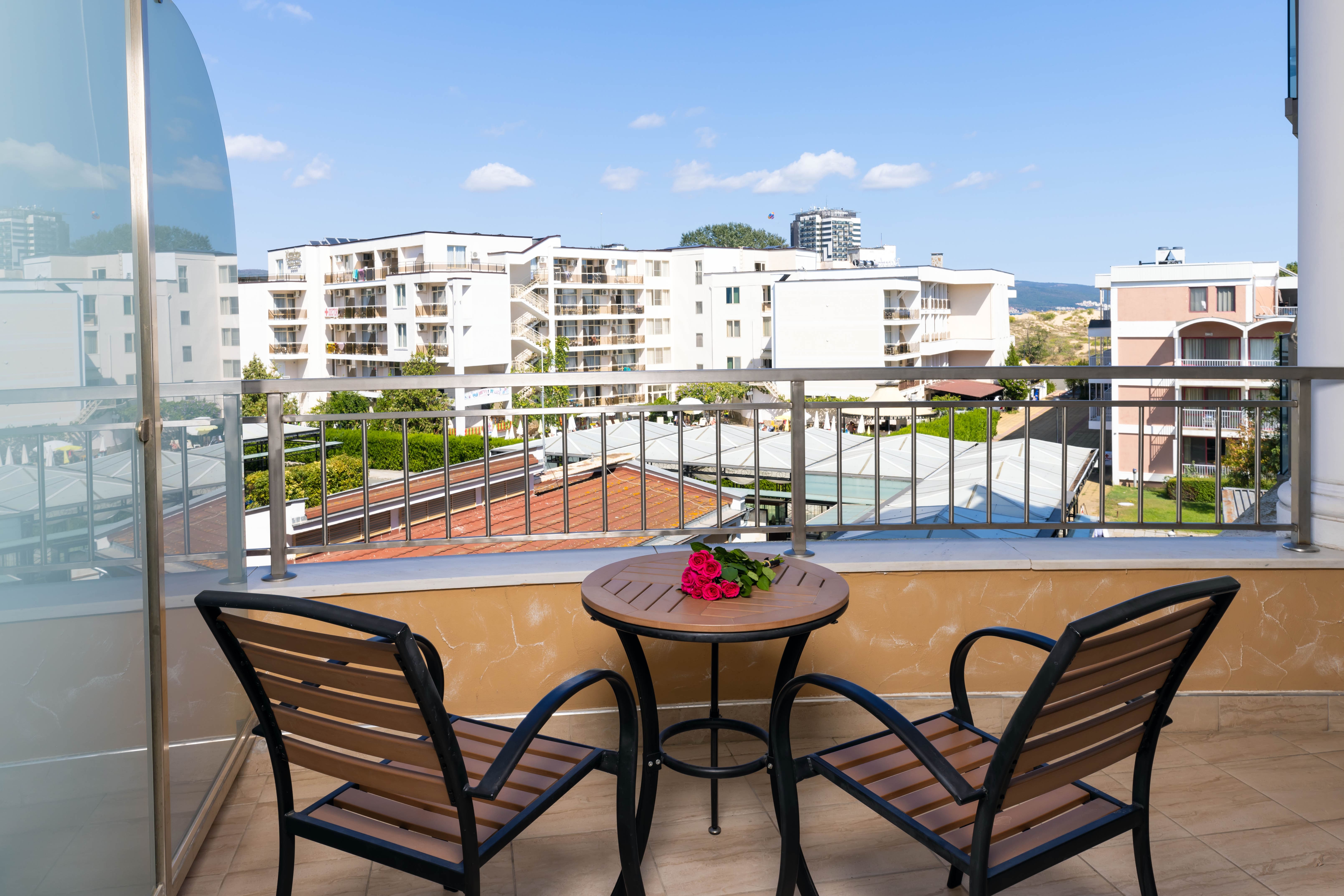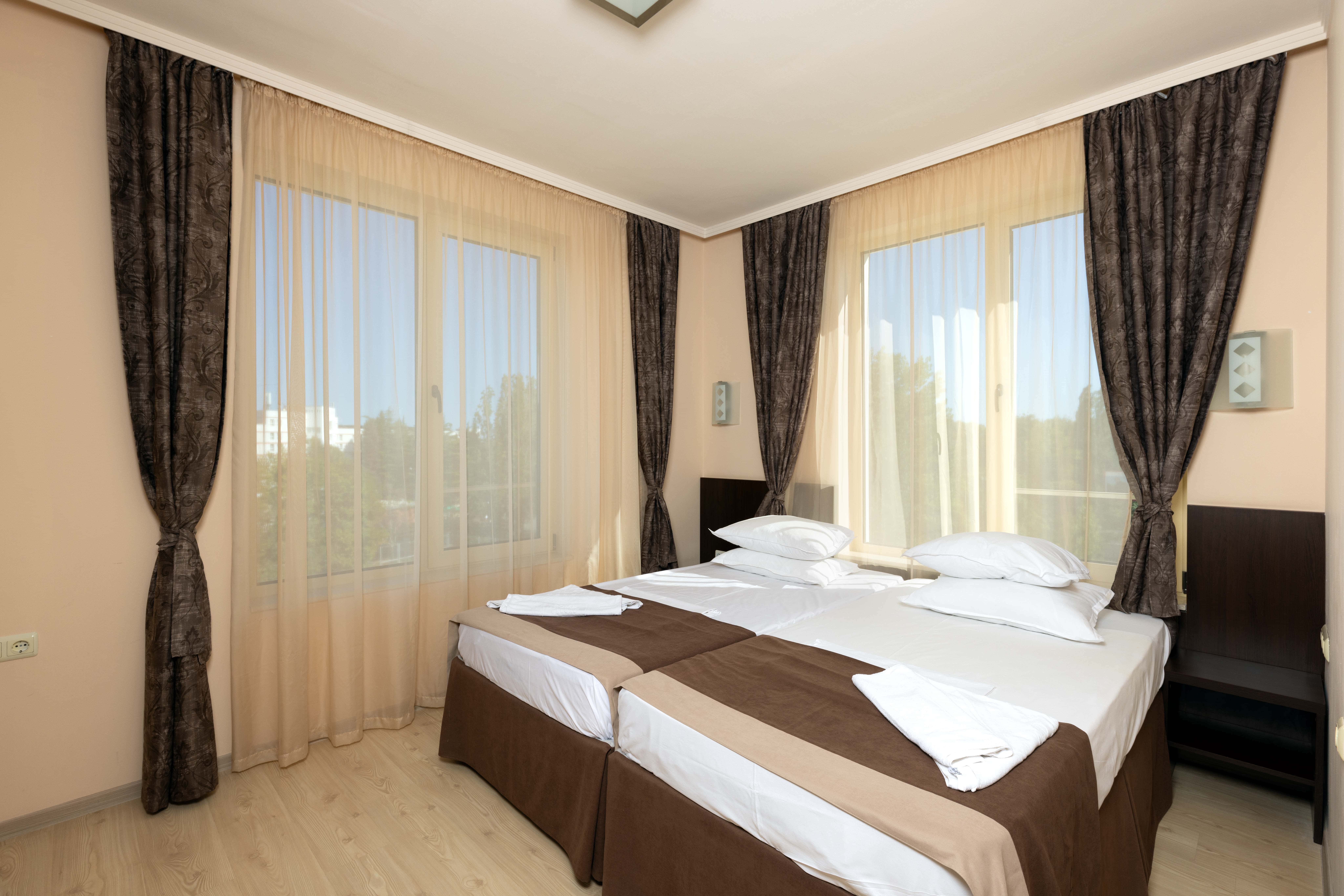 Хотелът се състои от една основна сграда на пет етажа, разполага със 79 стаи, от които 19 двойни стаи, 28 студиа, 11 стаи супериор, 4 едноспални апартамента, 13 двуспални апартамента и 4 двуспални ВИП апартамента. Всички студиа и апартаменти разполагат с кухненски бокс с хладилник, електрическа кана, телевизор с плосък екран, диван, баня с душ и сешоар. Всички стаи разполагат с безплатен Wi-Fi достъп и безплатен сейф.