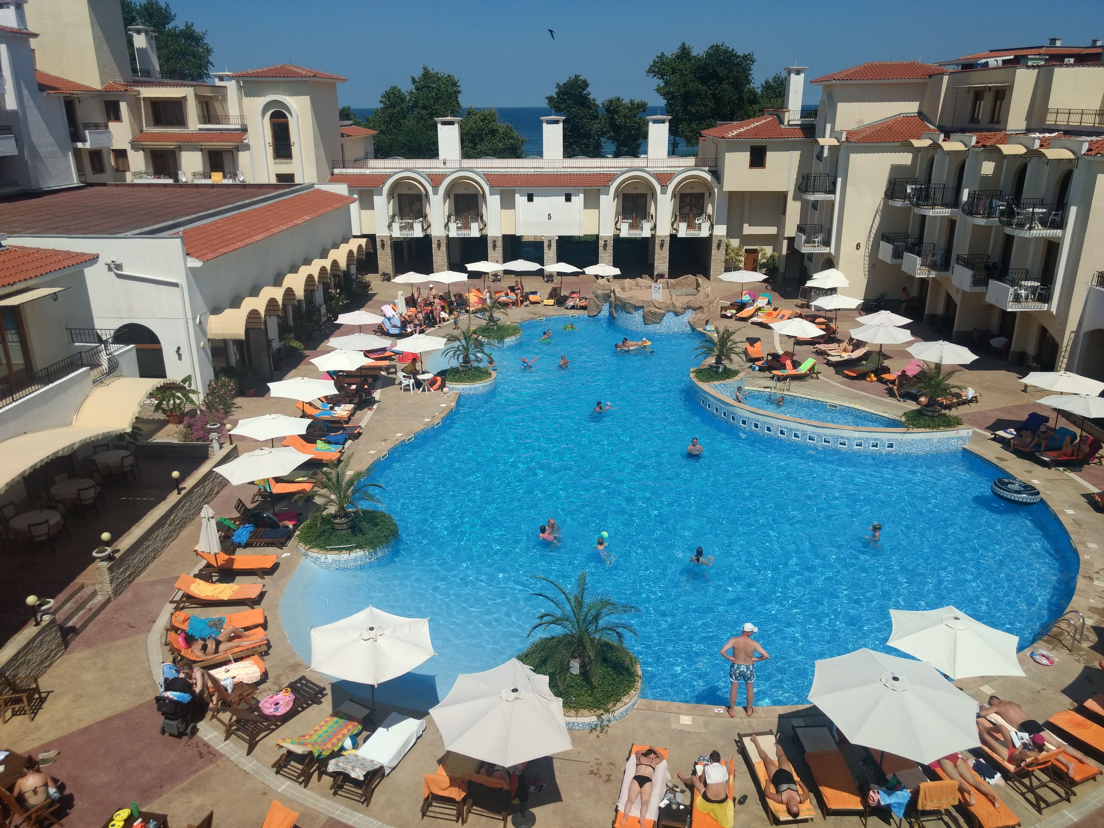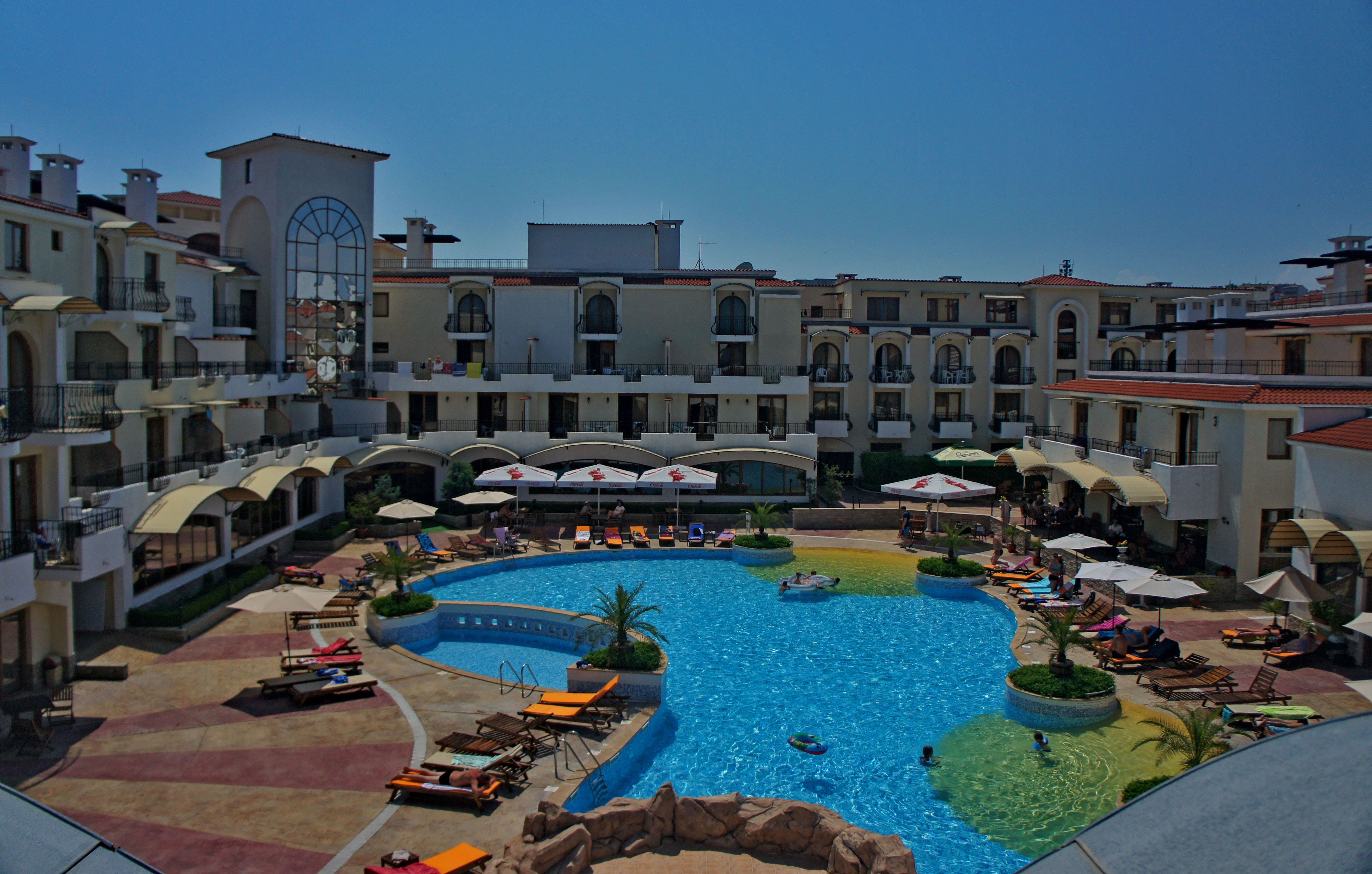 Има 2 открити басейна, 2бр джакузи, детски басейн, сезонен закрит солен отопляем басейн в СПА зоната. Предлагат се чадъри и шезлонги около басейните