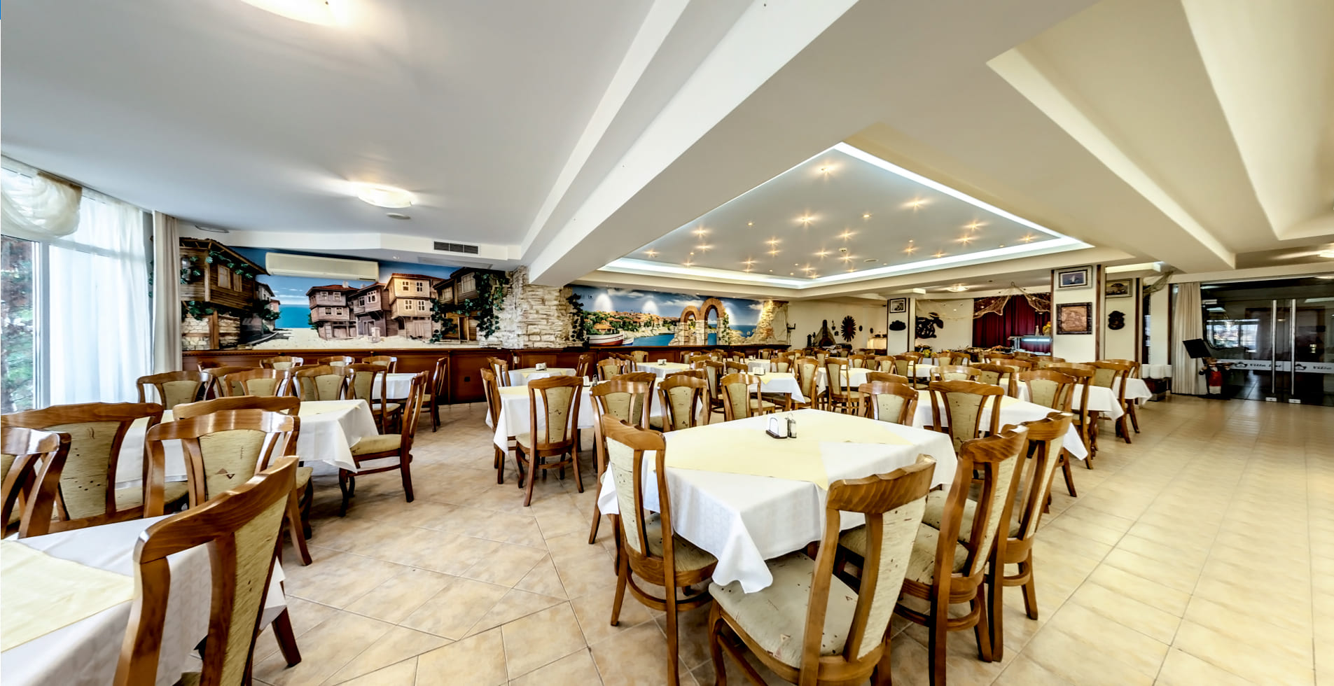 Ресторантът на хотела предлага ол инклузив изживяване с разнообразни кулинарни изкушения от българската и европейската кухня. Ресторантът разполага с две елегантни зали и открита тераса с изглед към морето и стария град. Атрактивният лоби бар впечатлява със своята просторна тераса със зашеметяваща гледка към Стария град и морето. В близост до открития и закрититя басейн се намира и Пул барът