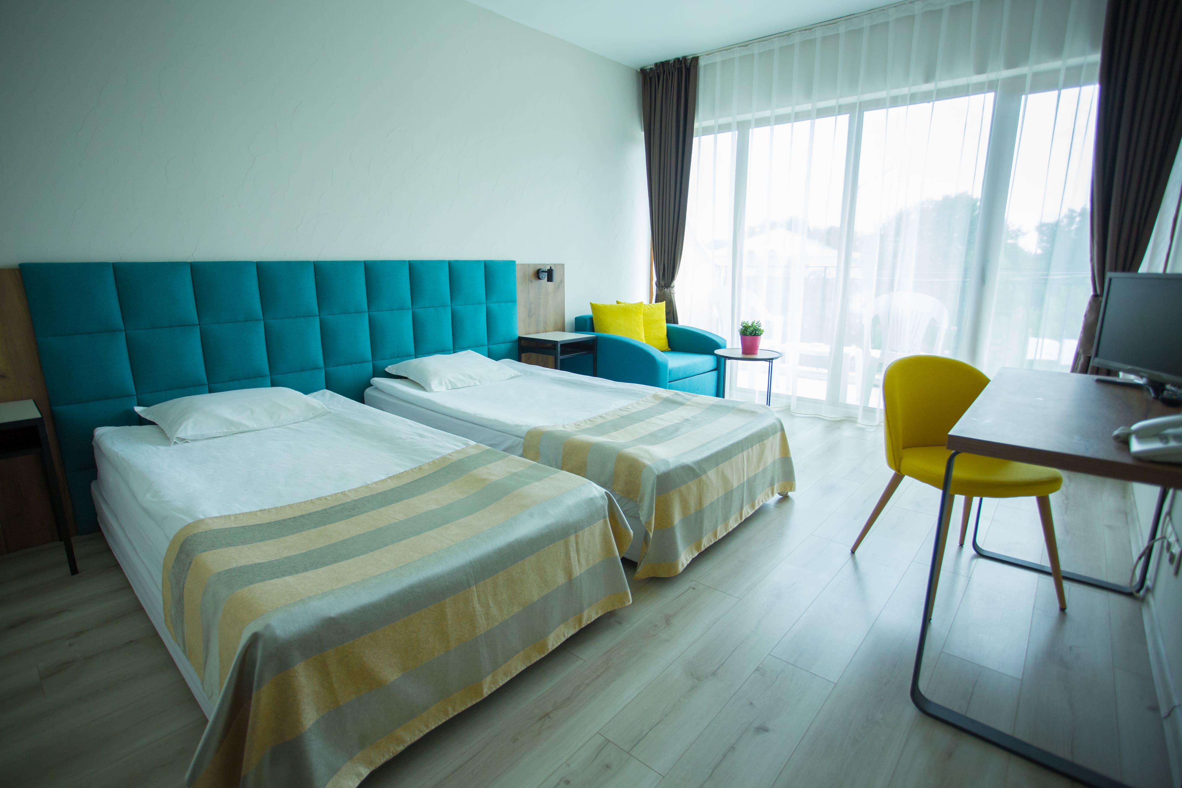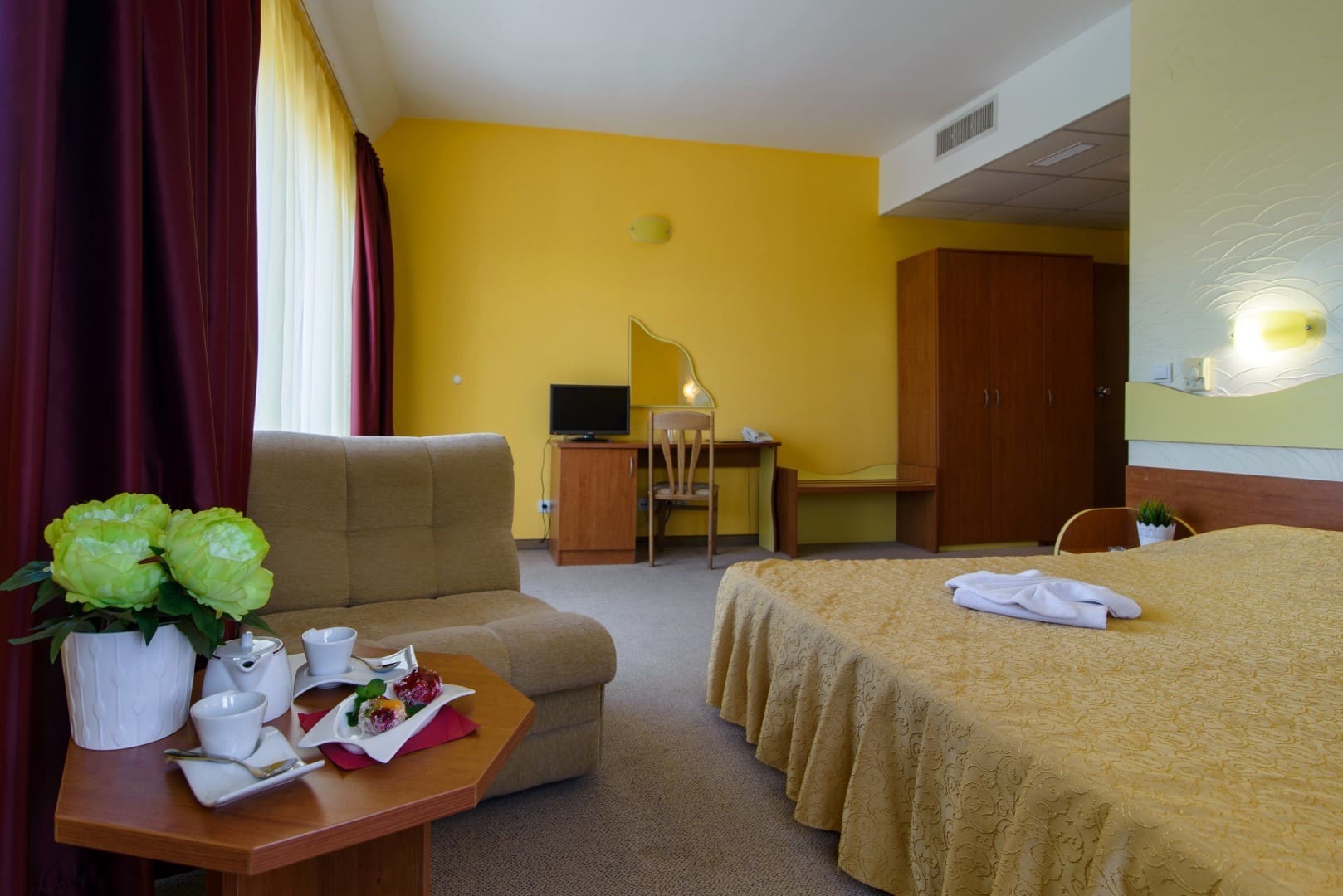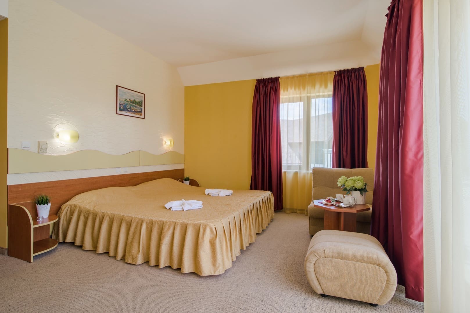 Хотелът е с централна климатична система, автоматична телефонна централа, WI-FI интернет и ТV мрежа, асансьор, целогодишно на Ваше разположение са 28 двойни стаи, 6 апартамента и един VIP апартамент.