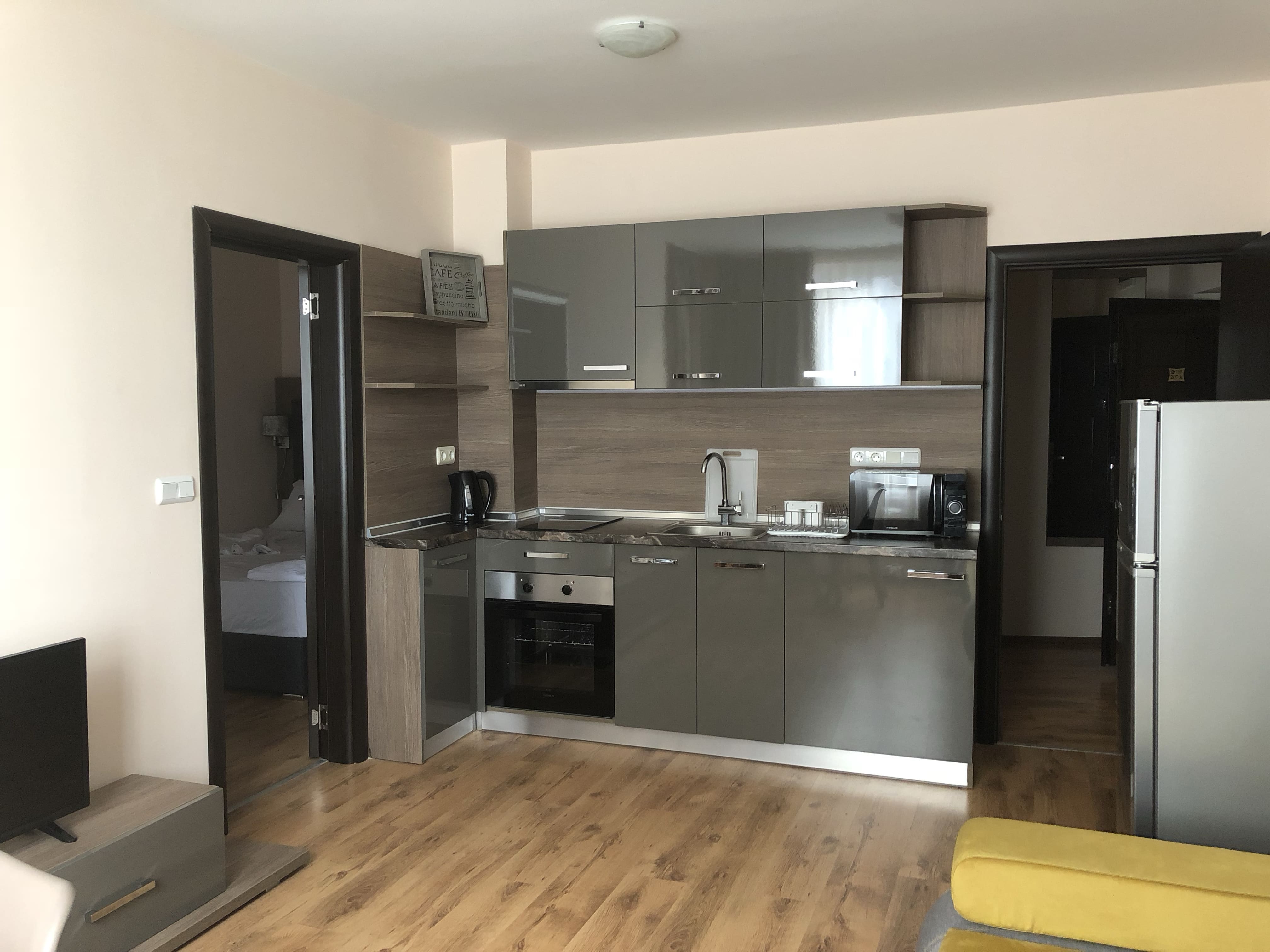 Разтоянието до плажа е 50 метра, почти толкова е и разтоянието до центъра на града.