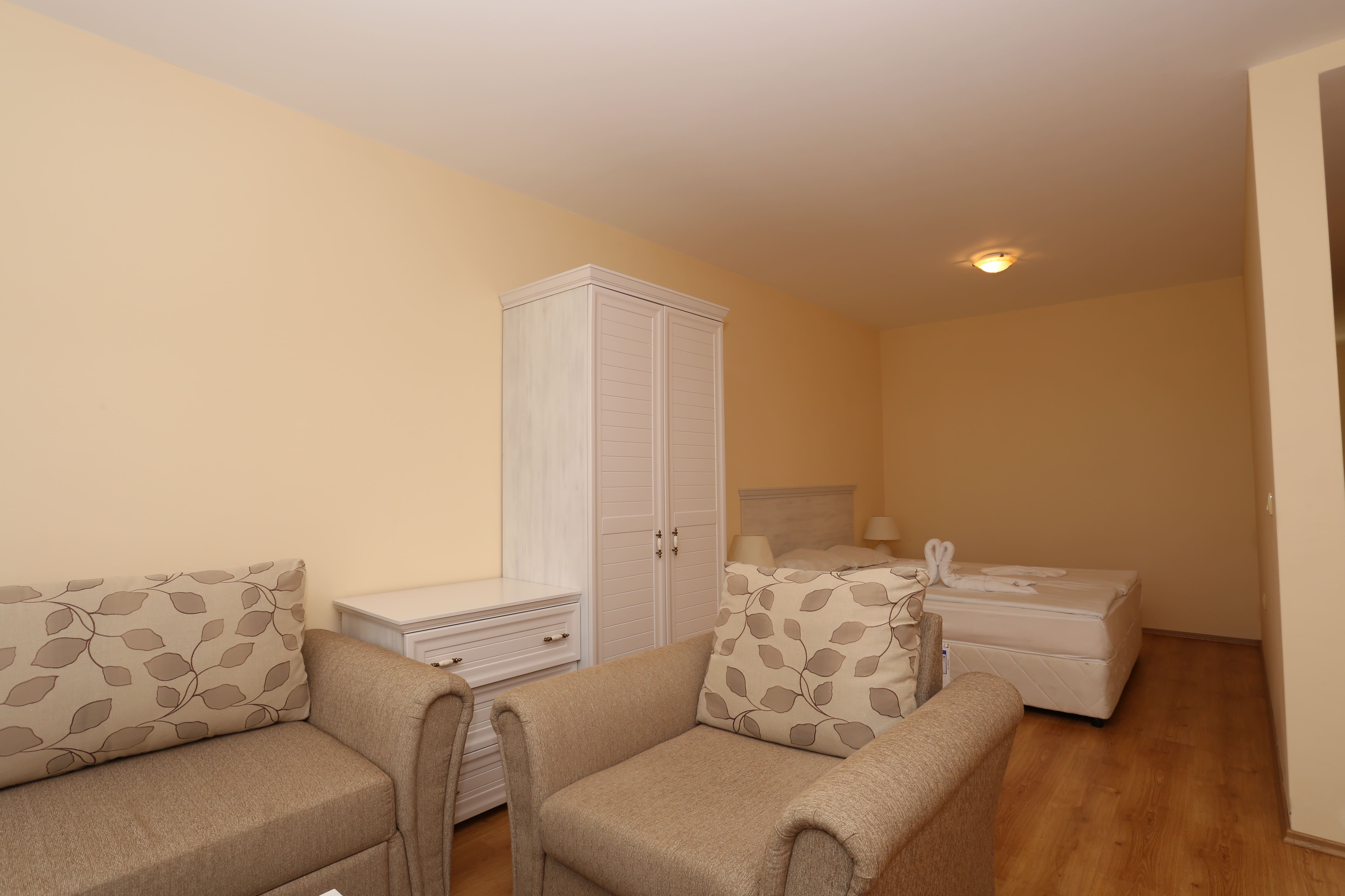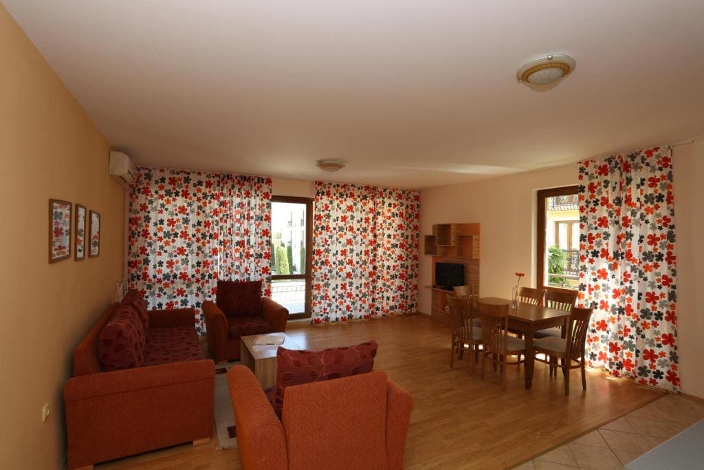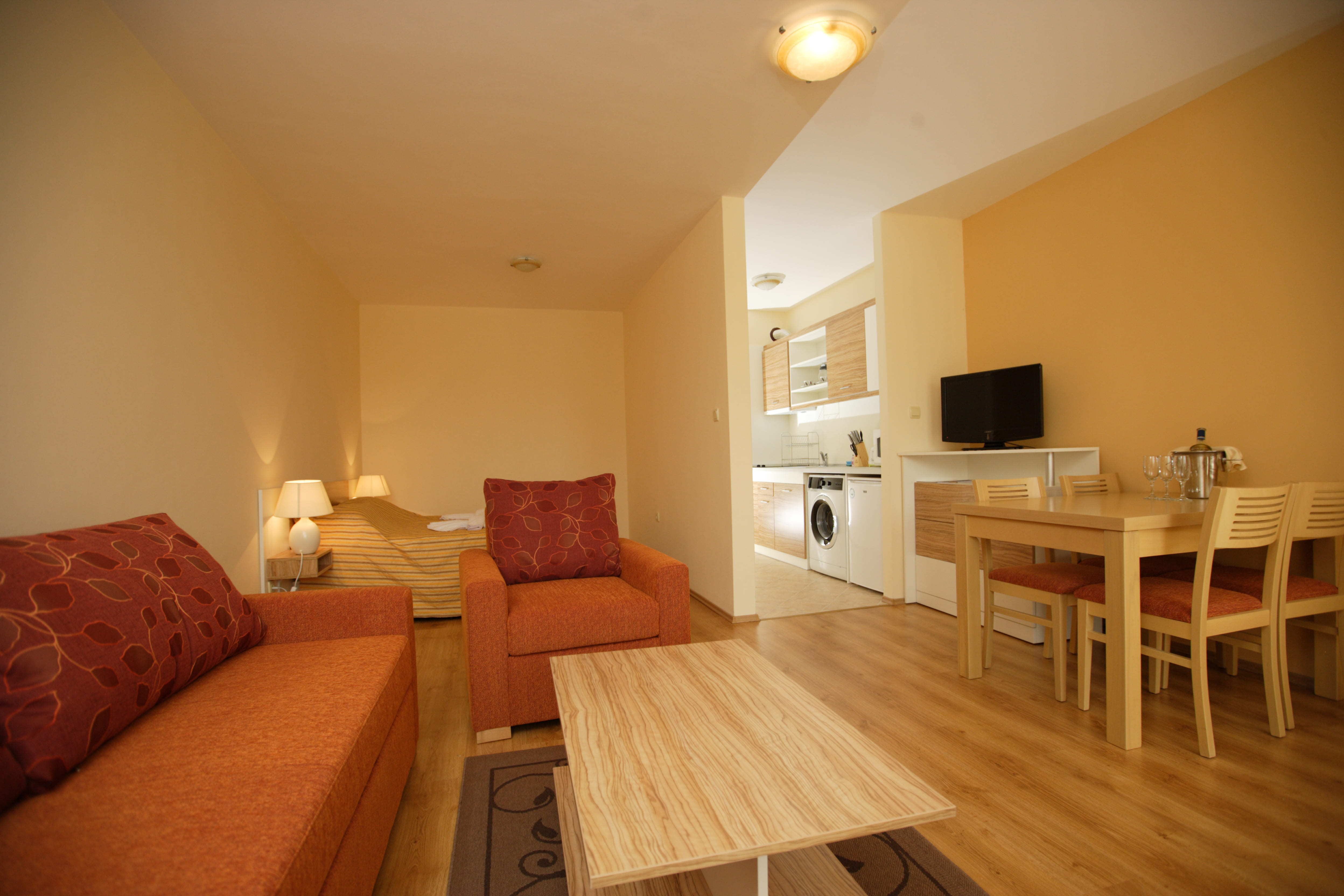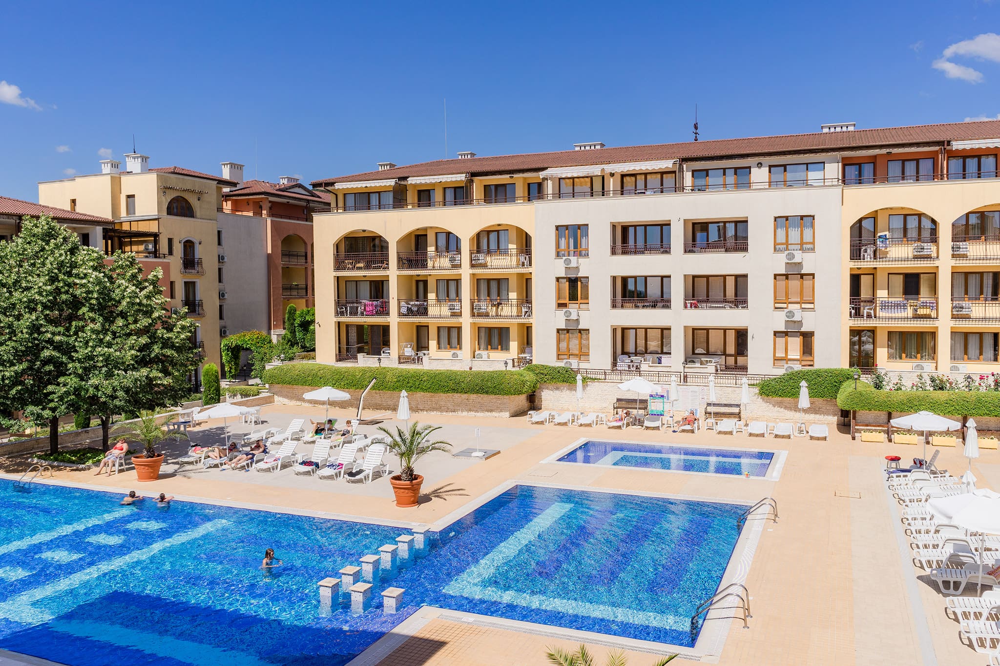 За настаняване в комплекса се предлагат напълно обзаведени и оборудвани просторни апартаменти и студиа със собствена тераса и красиви гледки към басейна, парка или морето.Спокойствието и сигурността на всички гости са подсигурени с контролиран достъп и денонощна охрана.