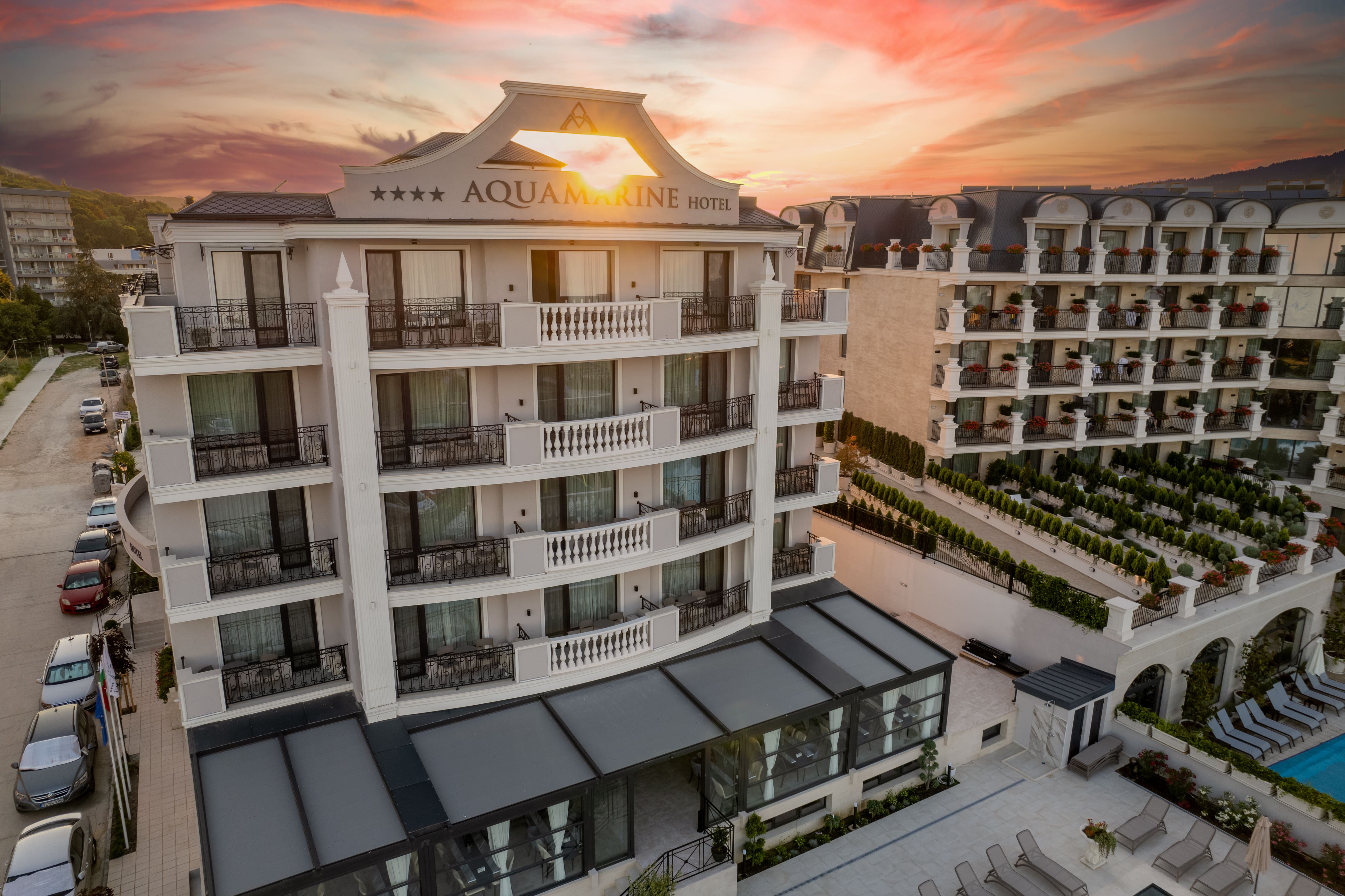 Aquamarine Hotel **** е най-новият четири-звезден хотел на първа линия в Кранево! Хотелът се намира на първа линия на централен плаж в к.с. Кранево, на 4км. Южнo от к.к. Албена и на 5 км. северно от к.к Златни пясъци. гр. Балчик се намира на 15км . От центъра на Гр. Варна е на 25км., а от летище Варна на 30км.