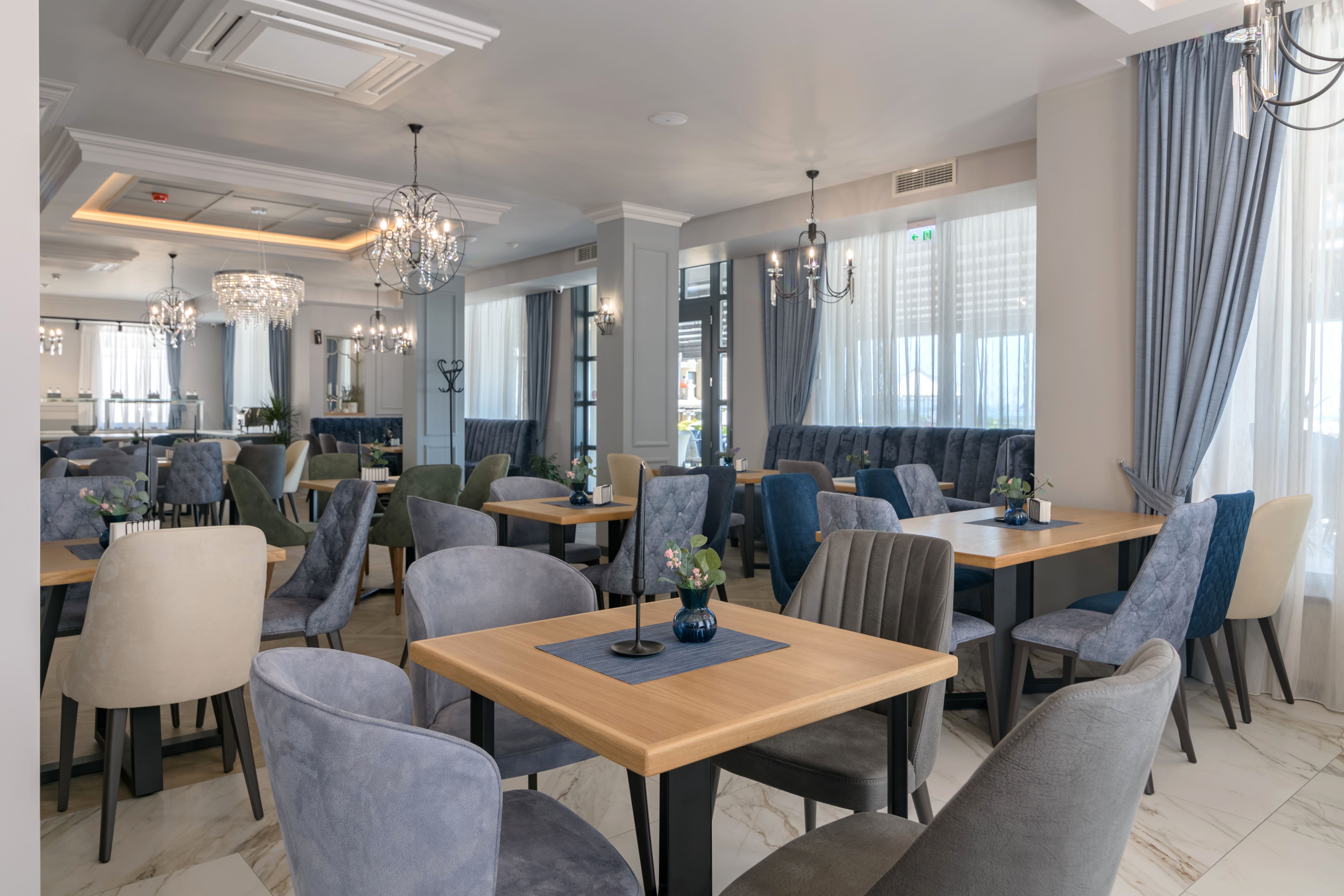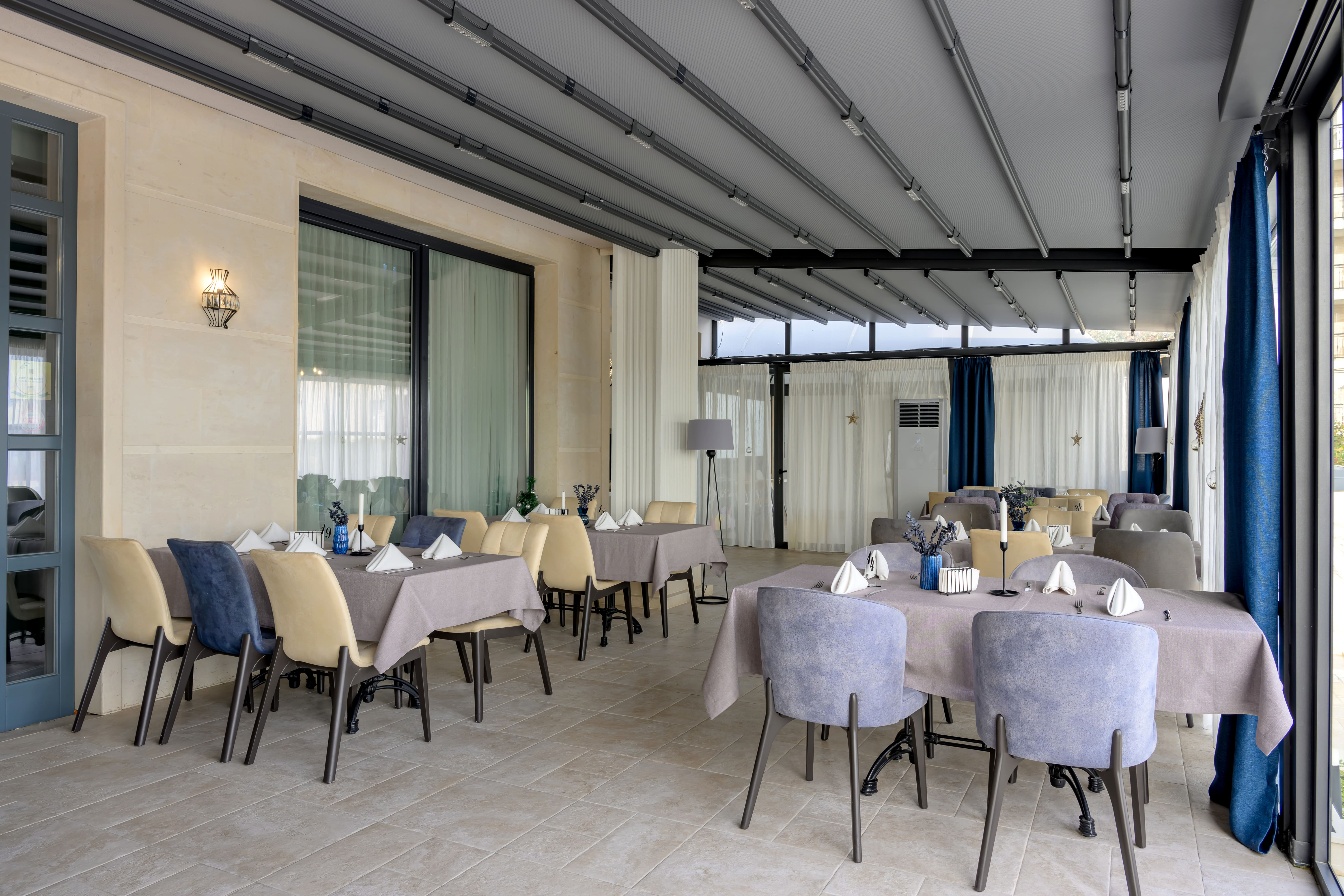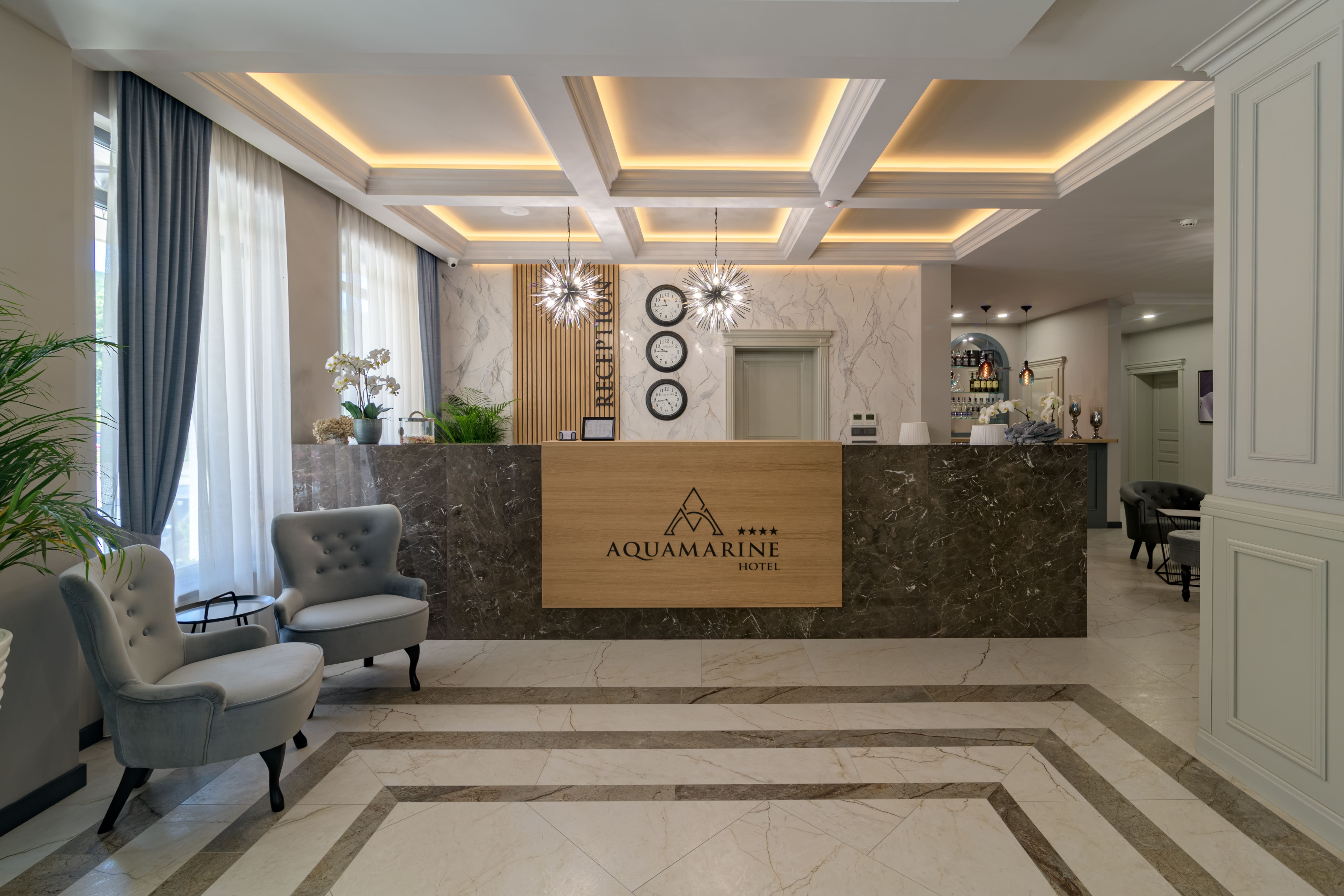 Ресторант Aquamarine е основният ресторант в хотела. С изисканият си стил и арт интериор ще завладее всеки един гост. Ресторанта разполага с 80 места във вътрешната си зала и 70 места на открита лятна тераса с неповторимa гледка към морето. Лоби барът се намира във фоайето на хотела. Тук може да се отпуснете в сепарето с чаша малцово уиски преди или след вечеря.