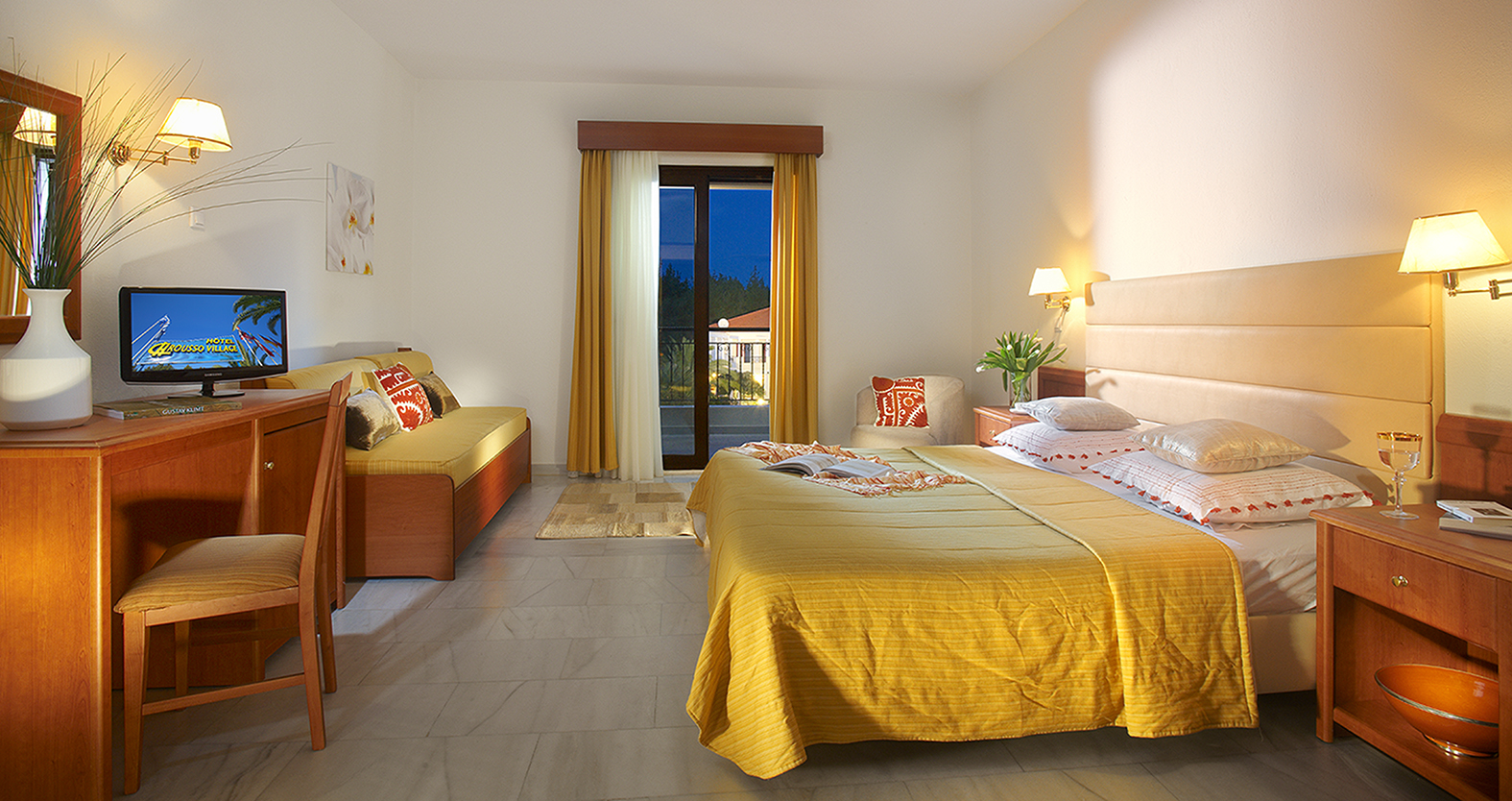 Описание Местоположение Полуостров Халкидики, с площ 3000 кв.км, ще ви удиви с пищната си зелена растителност и с прекрасните си пясъчни плажове. На един от тях, в южния край на полуостров Касандра, в с. Палиури се намира хотел Chrousso Village – един хотелски комплекс, чието отношение към околната среда е за пример, винаги е съчетано с изискано гостоприемство. Това място за настаняване е на 5 минути пеша от плажа. Комплекс Chrousso Village се намира в южния край на Касандра (един от трита ръкава на полуостров Халкидики) и на 400 метра от плажа Chrousso, който е отличен с еко наградата Син флаг. Настаняване Хотелът разполага общо със 159 стаи. В апартаментите, които са модерно декорирани, могат удобно да бъдат настанени четирима души, разполагат с удобен хол, напълно обзаведена кухня, отделна спалня, баня, сателитна телевизия, телефон и климатик. Студията представляват едно общо пространство, където може да се настанят трима души, като им се предоставят същите удобства, каквито се предлагат и в апартаментите. Всички стаи са просторни, разполагат с големи веранди или балкони с изглед към градините, към боровата гора или към басейна. Храна и напитки Край басейна има 2 бара, които работят през целия ден и сервират освежаващи коктейли и айс кафе. В ресторанта можете да се насладите на традиционни и международни ястия, приготвени с пресни продукти от района. Удобства, спорт и забавления За удобството и пълноценния отдих на своите гости в хотела се предоставя информация за пътувания, пощенски услуги, медицински услуги, сейф, пералня, събуждане, минибус, мини маркет, уроци по гмуркане, уроци по тенис, интернет. За гостите, които са със спортен дух е на разположение тенис корт, игрище за баскетбол, волейбол, плажен волейбол, както и маса за тенис. На плажа бихте могли да изпитате удоволствието от различни морски спортове като водни ски, сърфинг, кану и морски игри. За децата - бебешки басейн, а също детска дискотека и мини клуб. Wi-Fi интернет е наличен в целия хотел и е без заплащане. Безплатен обществен паркинг е достъпен на място (резервация не е необходима). Плаж Комплексът се намира на пет минути пеш от плажа Chrousso, който е отличен с еко наградата Син флаг. Има 2 басейна за възрастни и 2 детски басейна. Тераса за слънчеви бани.
