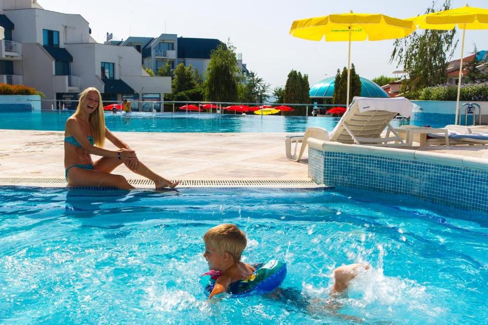 Централният плаж на Свети Влас е близо до хотела. На разположение на гостите има откри басейн.