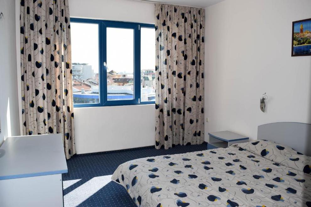 Хотелът посреща гостите си в 75 двойни стаи, голяма част от които са с морски изглед, 7 студиа, 11 апартамента. Всички помещения са климатизирани и оборудвани с климатик, бюро, балкон с изглед към града, самостоятелна баня, плоскоекранен телевизор, минихладилник, спално бельо и кърпи.