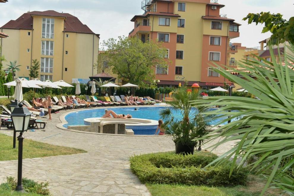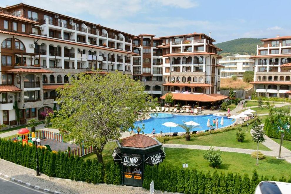 Апарт-комплекс ОЛИМП се намира в Свети Влас, на 500 метра от централния плаж. Комплексът се състои от две сгради, които образуват приятна закрита зона с басейн и зеленина. Комплексът предлага слънчеви апартаменти с хубави гледки - басейн, море, планини и град Свети Влас. Олимп е на 4 км от Слънчев бряг и на 30 км от летището. Марина Диневи е на 1,1 км.