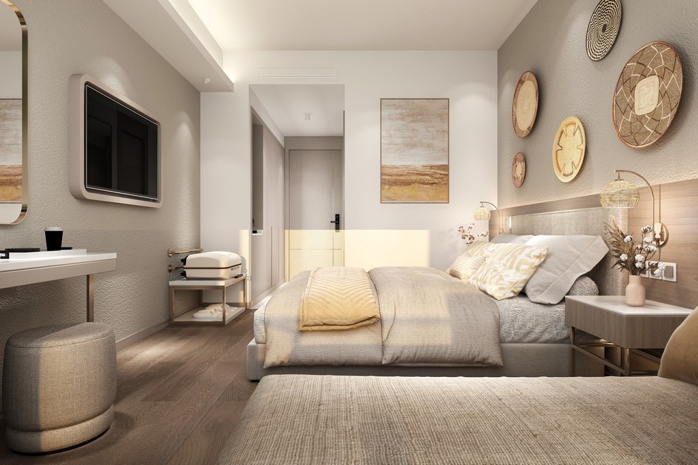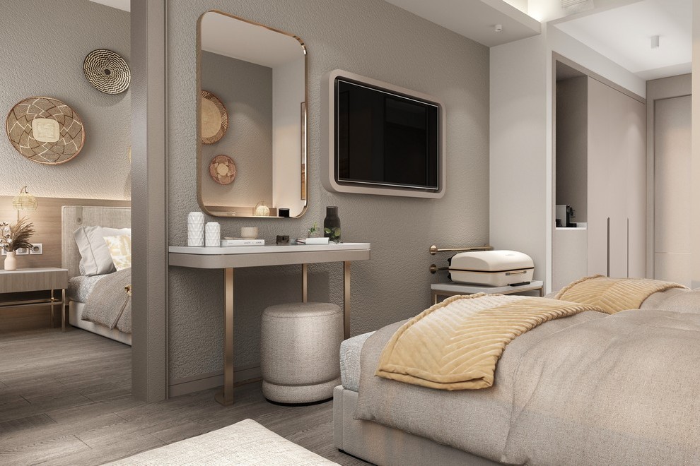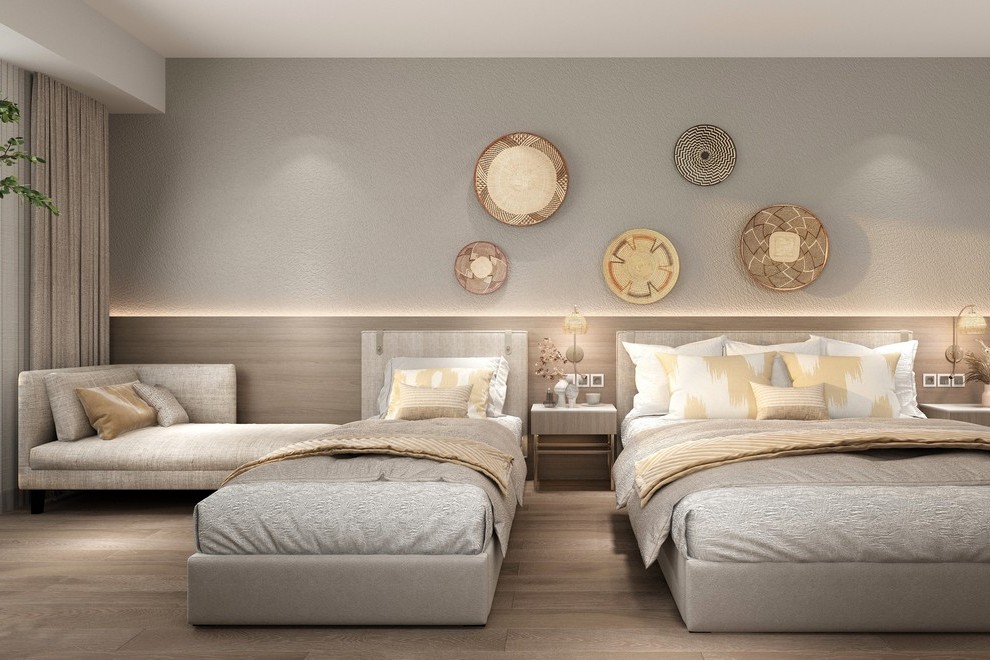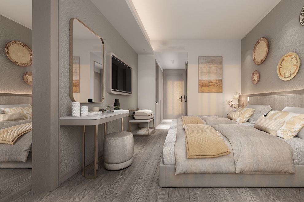 Състои се от два 7-етажни корпуса, в които са разпределени 320 климатизирани стаи: Deluxe Land View, Deluxe Swim Up Room, Deluxe Jacuzzi Room, Deluxe Suite Room и Deluxe Family Room. Те са оборудвани с телевизор, телефон, минибар, сейф, баня с душ, сешоар, безплатни тоалетни принадлежности. Ежедневно почистване на стаите.