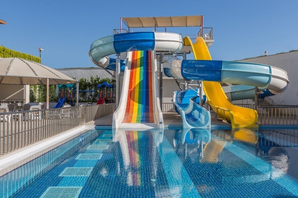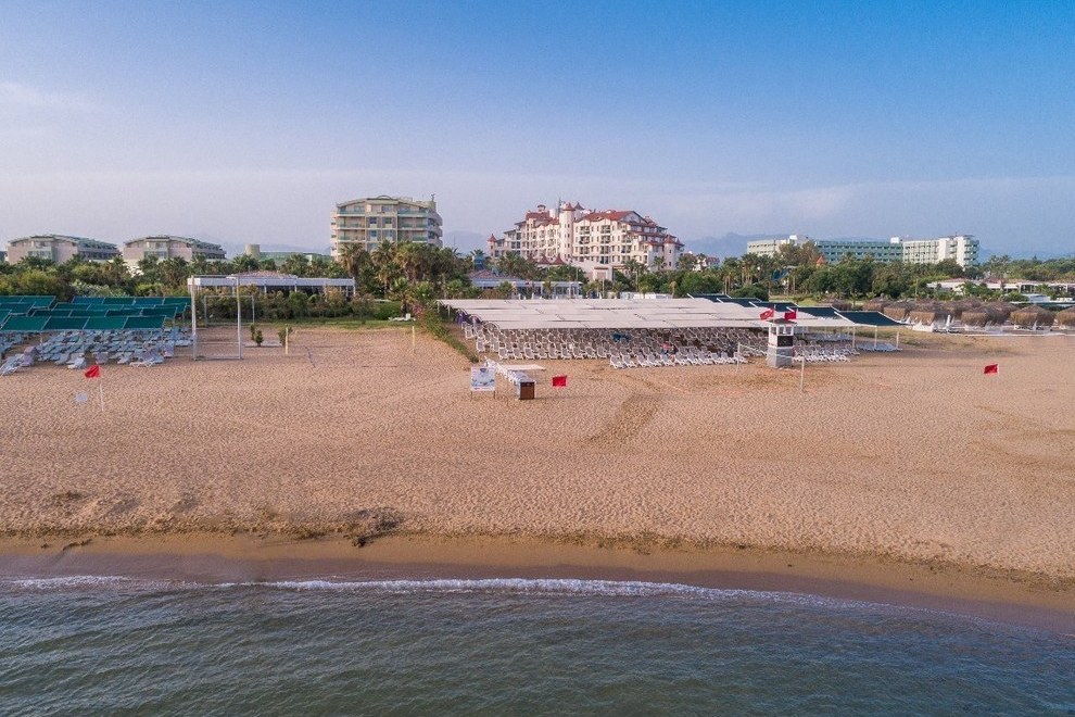 Собствен пясъчен плаж на около 650 м от хотела. През деня е осигурен безплатен шатъл на всеки 15 мин. Има бар и ресторант на плажа. Открит басейн, басейн с водни пързалки, детски басейн.