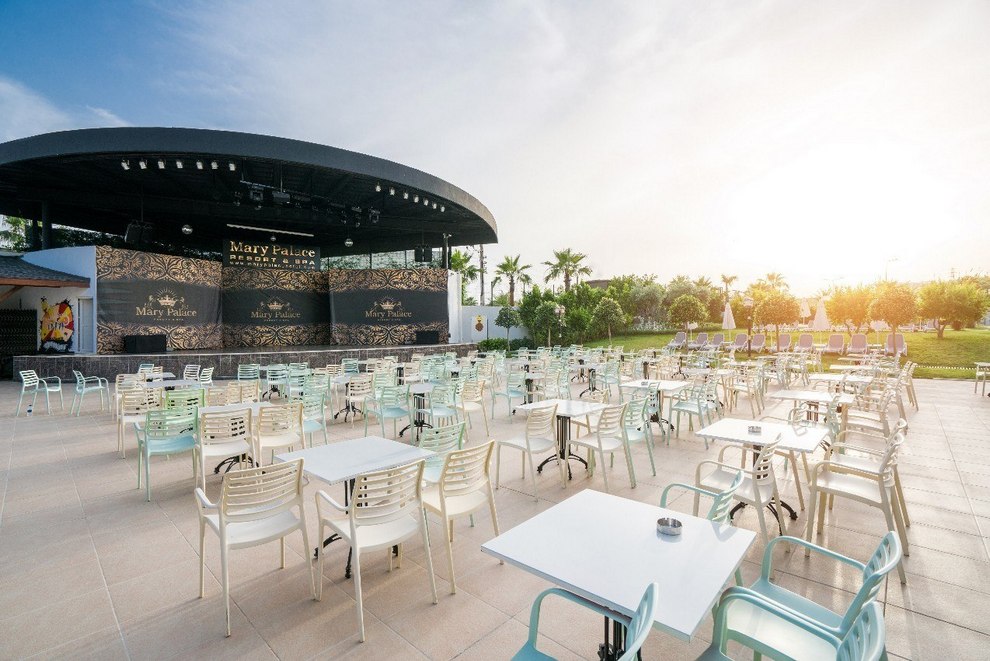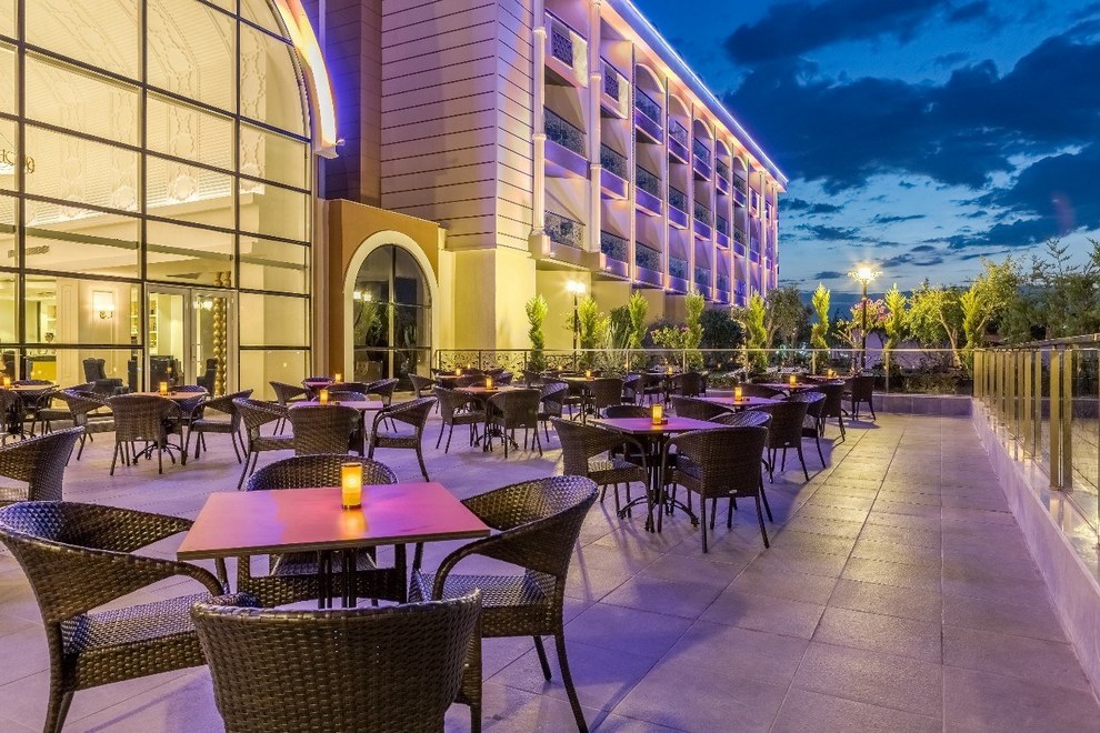 На разположение на гостите са основен ресторант и 2 а`ла карт ресторанта: турски и италиански. Освежаващи напитки и закуски се поднасят в 6 бар и сладкарница. Има и гьозлме пекарна.