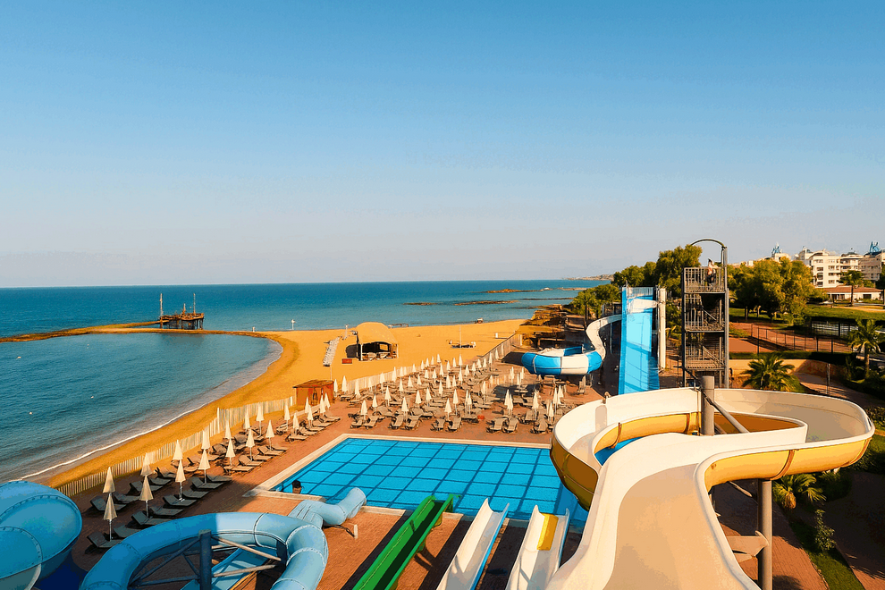Гостите могат да се забавляват в голям аквапарк с 14 водни пързалки като камикадзе, туистър и бумеранг. Детски басейни, включително пързалки за октоподи, пиратски кораб и тропическа аква кула. Басейн за дейности и басейн за релакс. Различни видове спорт и дейности, включително плажен волейбол, футбол и тенис на маса и водни спортове. СПА център, сауна, масаж, парна баня. За децата има 1 детски басейн, водни пързалки, детска площадка, миниклуб (4-12 год.),
