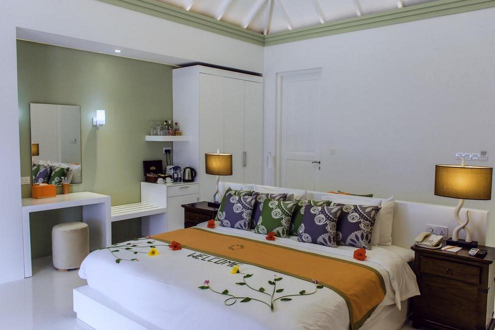Хотелът разполага с 225 места за настаняване: Deluxe Room (50 кв.м), Deluxe Water Villa, Prestige Jacuzzi Water Villa, Grand Beach Villa (64 кв.м), Grand Beach Villa With Pool, Grand Water Villa, Grand Water Villa With Pool, Romantic Beach Villa with Pool, Grand Beach Suite with Pool, Water Villa, Romantic Water Villa with Pool (112 кв.м), Two Bedroom Beach Suite, Presidential Water Suite.