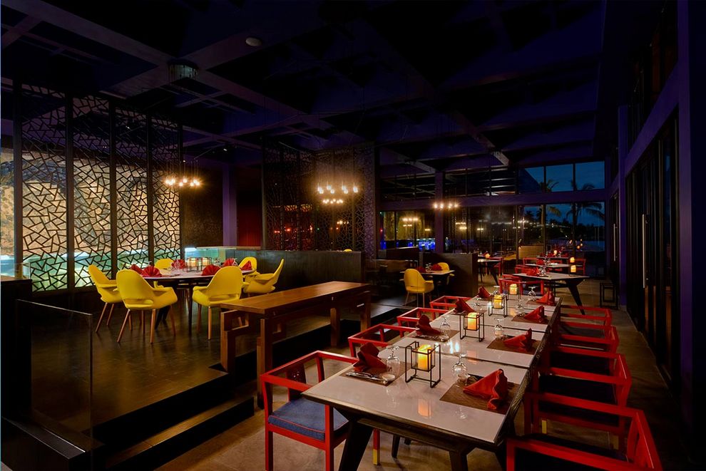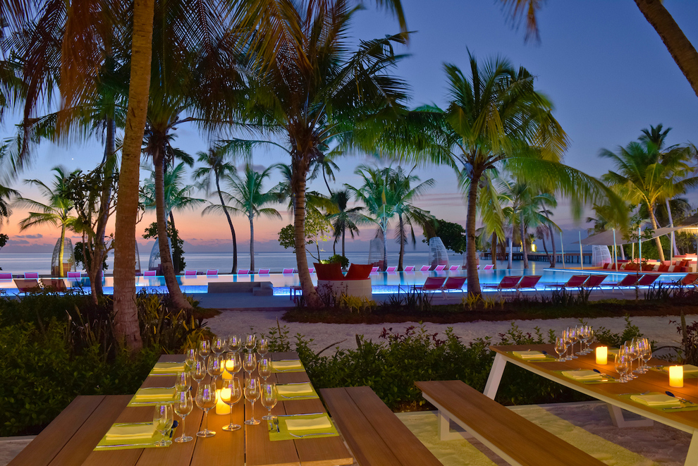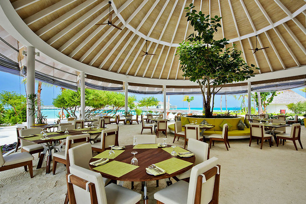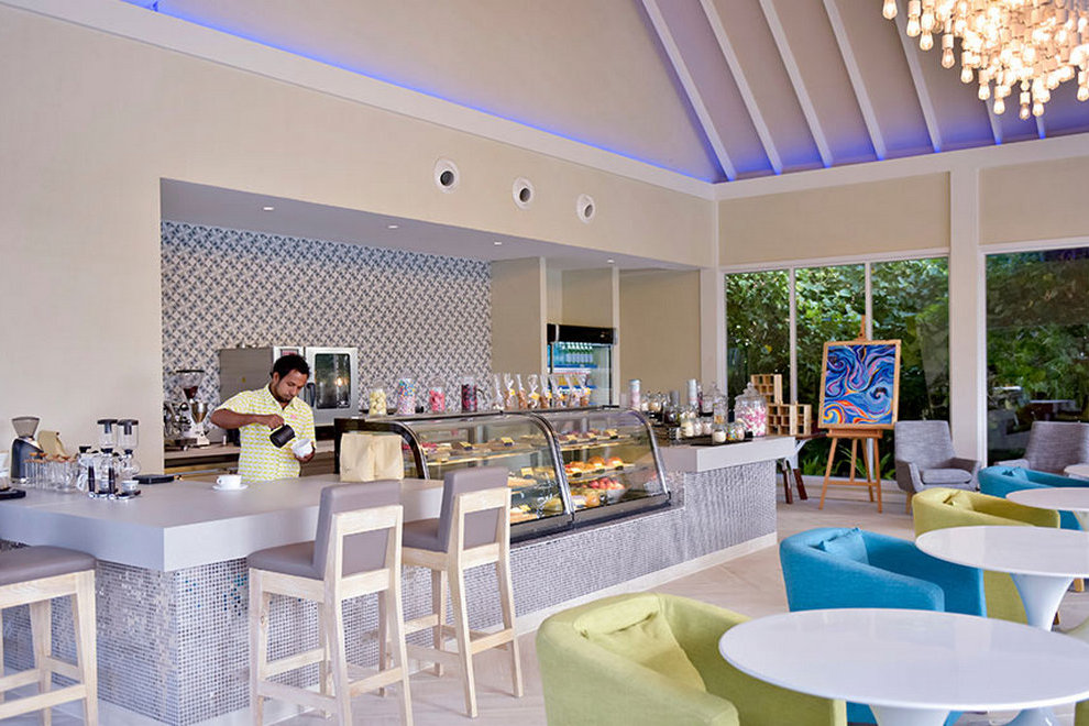 На разположение на гостите са основен ресторант, отворен за закуска, обяд и вечеря и а`ла карт рсторантите: „Flavour & Zest“ (бюфет) - модерен ресторант с отворена кухня, сервиращ ястия от цял свят. Намира се в близост до басейните на хотела. „Sea Dragon“ - автентична азиатска кухня с пресни морски дарове. Ресторантът е отворен само за вечеря и предлага меню а`ла карт и фиксирани вечери с няколко ястия. „Azure“ - семпъл ресторант с класическа средиземноморска кухня, разположен на плажа. Отворен за обяд и вечеря. „Smoked“ - грил ресторант, разположен до плажа. Отворен за вечеря и предлага пържоли, риба и зеленчуци на скара, приготвени в отворена кухня. „Aroma“ - кафене край езерото до Арт студиото, кафе и пресни сладкиши. Deli е гастрономически бутик, където можете да хапнете бързо сандвичи и сладкиши, да изпиете прясно сварено кафе, да се насладите на малдивски чай или да си вземете бутилка вино, изискано сирене и други деликатеси. Разнообразни напитки с предлагат в „Breeze“ - бар до инфинити басейна: музика, изпълнявана от местни диджеи, музика на живо, коктейли и наргилета. „Forbidden Bar“ - бар само за възрастни, разположен до ресторант Sea Dragon: разнообразие от коктейли с микс от модерни и азиатски мотиви, изпълнявани от диджей. „Beach Club“ - идеално място за релакс от сутрин до късно през нощта. Освежаващи напитки с музикални ритми.