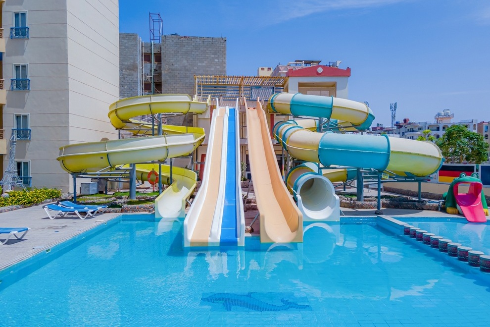 Собствен пясъчно-каменист плаж. 4 открити басейна. Има и аквапарк с 4 пързалки за възрастни, 3 за деца, работно време от 10:00-12:00 и от 14:00-17:00. Басейнът на аквапарка е единственият отопляем басейн. Чадъри, шезлонги, плажни кърпи на плажа и при басейна с ползват безплатно.