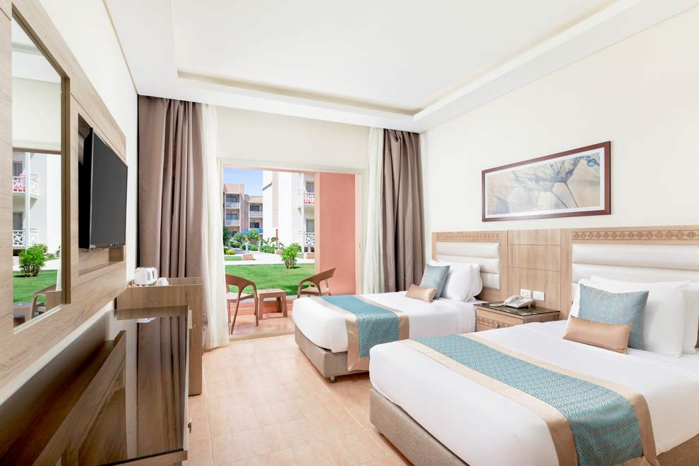 Състои се от комплекс от 3-етажни сгради, в които са разпределени 296 стаи: 204 Standard room (24 кв.м), 16 Family room (43 кв.м, две спални помещения и една баня). Всички стаи са оборудвани с климатик, телевизор, телефон, минибар (зарежда се всеки ден с минерална вода - безплатно), сейф (безплатно), баня с душ, сешоар. Почистване на стаите и смяна на кърпите - всеки ден, смяна на спално бельо – 3 пъти в седмицата.