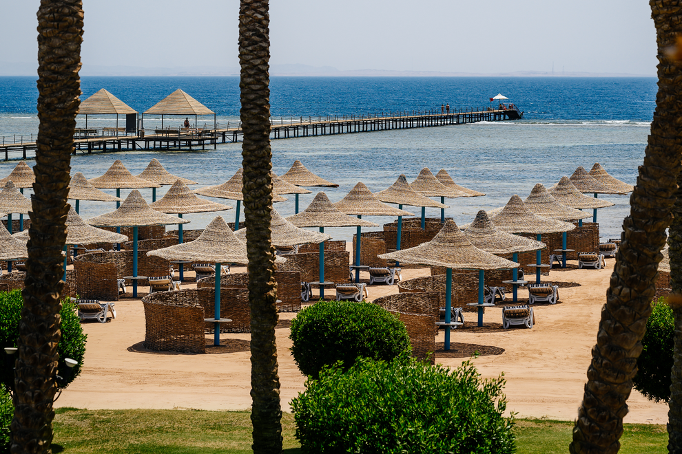 Собствен, пясъчен и коралов плаж, с платформа. Основен басейн, комбиниран с детски басейн, басейн „Серенити“. Аквапарк с 6 различни пързалки за деца и възрастни, работно време 10:00 - 13:00 ч. и 14:30 - 17:00 ч. Чадъри, шезлонги и плажни кърпи на плажа и при басейна се ползват безплатно