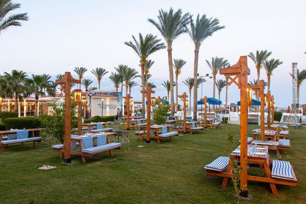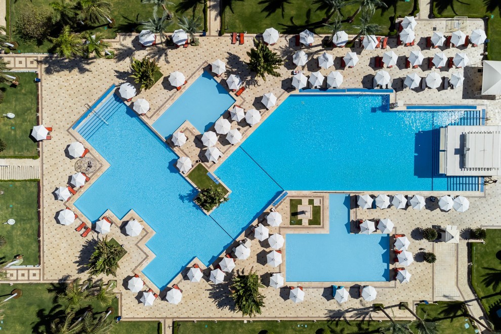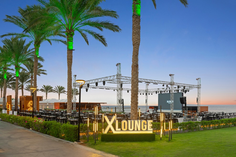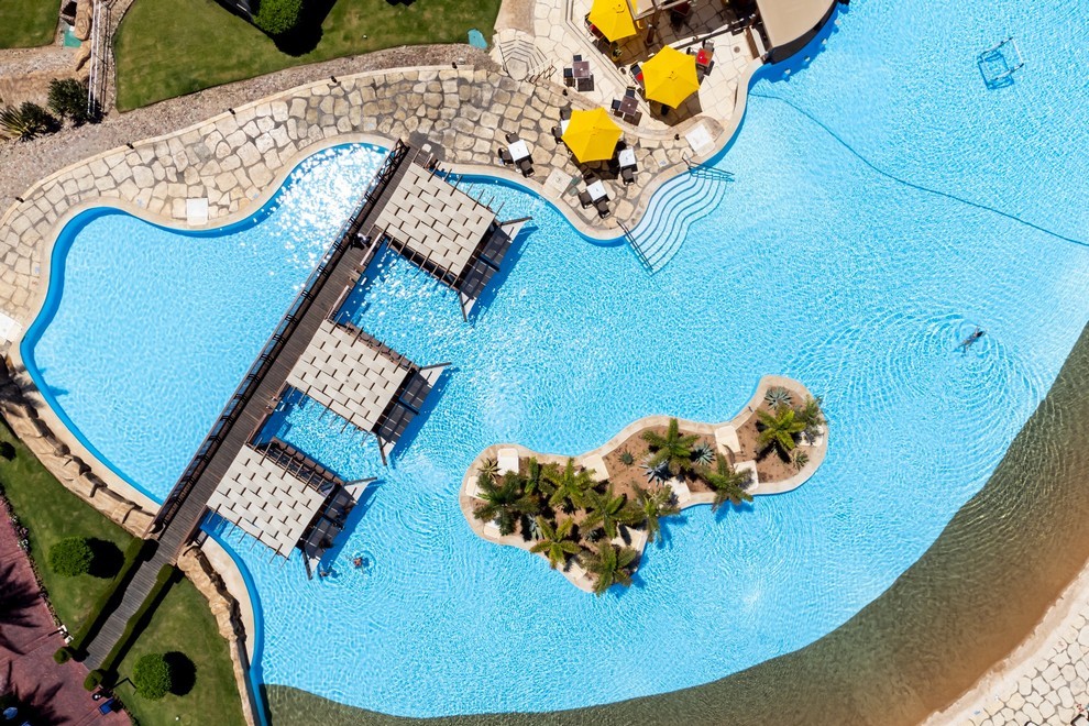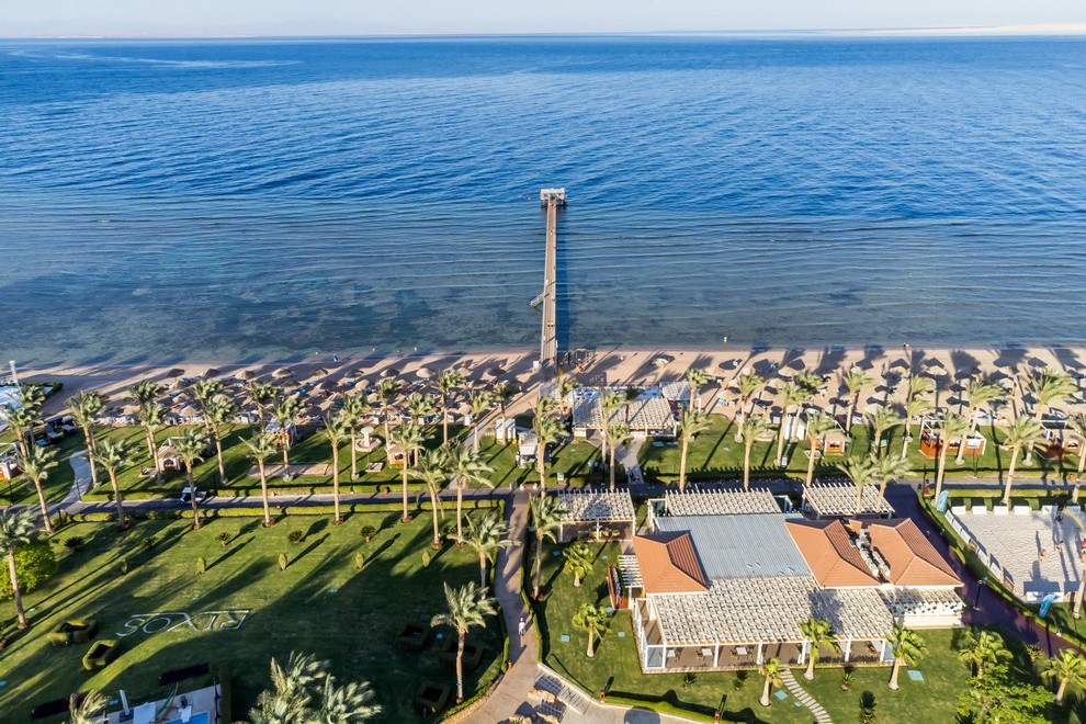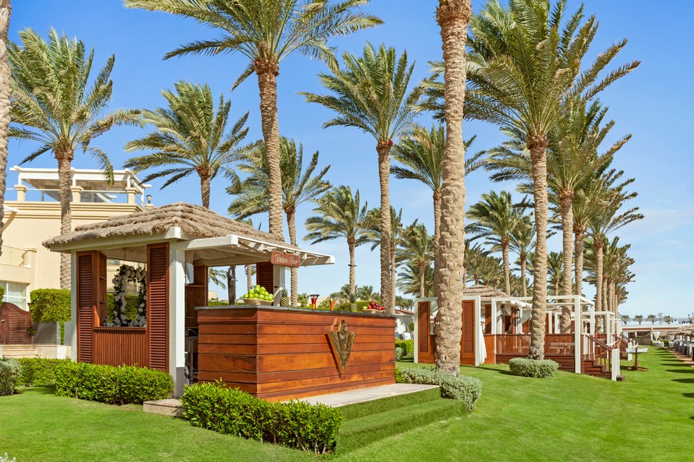 Собствен пясъчен и коралов плаж, дълъг 330 м, с понтон, дълъг 147 м. Безплатен шатъл до плажа. Външни басейни с прясна вода: Лагунен басейн: 4000 кв.м. Оазисен басейн: 2400 кв.м, отопляем през зимата. Учебен басейн: 1300 кв.м. Романтичен басейн: 420 кв.м. Пещерен басейн: 150 кв.м. Палмов басейн: 150 кв.м. Аквапарков басейн: 150 кв.м, отопляем през зимата. Павилиони край басейна (близо до Лагунния басейн) - срещу допълнително заплащане.