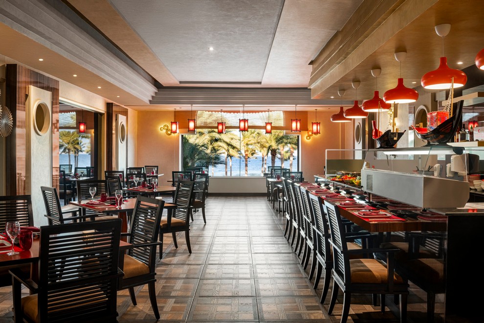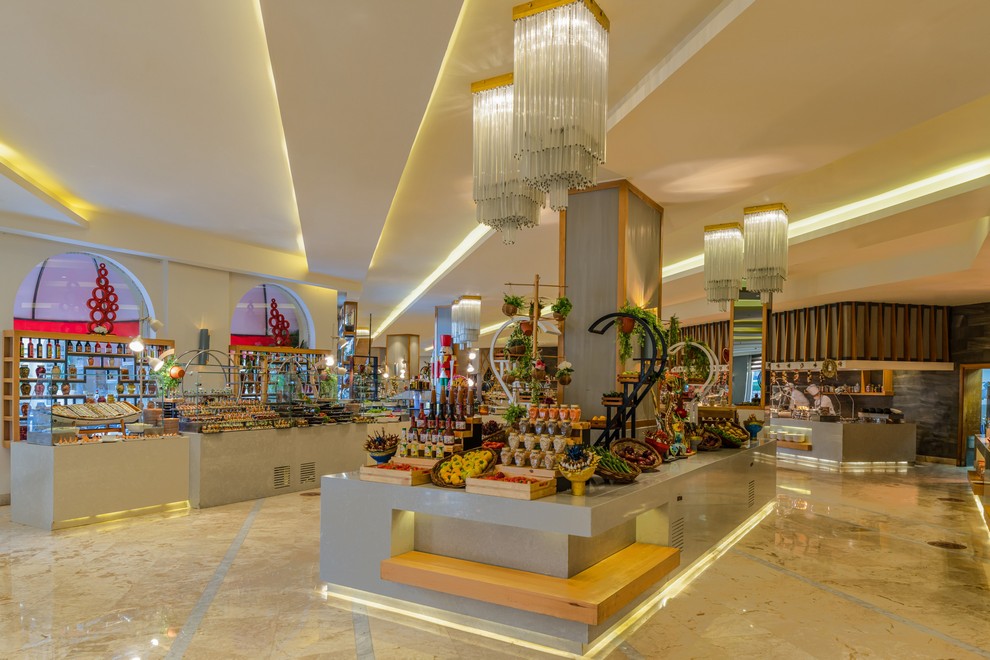 На разположени на гостите е основният ресторант The Palm, отворен за закуска, обед, вечеря и късна вечеря. 8 а`ла карт ресторанта: Gusto (италианска кухня), Sakura (суши-бар), Taj Mahal (индийска кухня), La Churrascaria (бразилска кухня), Salt (рибен ресторант), Lalezar (турска кухня), азиатска кухня, Executive Lounge (международна кухня) и The Mangal - BBQ. В 8 бара се предлагат разнообразни напитки: Lobby Bar, работи денонощно, Sports Bar, Sunset Lounge Bar, Café De Nuit, Oasis Pool Bar, LagoonPool Bar, Detox Bar, Rixos Lounge (работи денонощно).