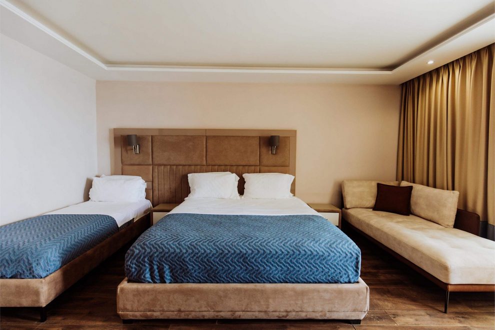 Хотелът посреща гостите си в 110 стаи. Те са оборудвани с климатик, телевизор, телефон, сейф, бюро, баня с душ/вана, сешоар, чхли, халат, безплатен Wi-Fi . Повечето от стаите имат тераса.