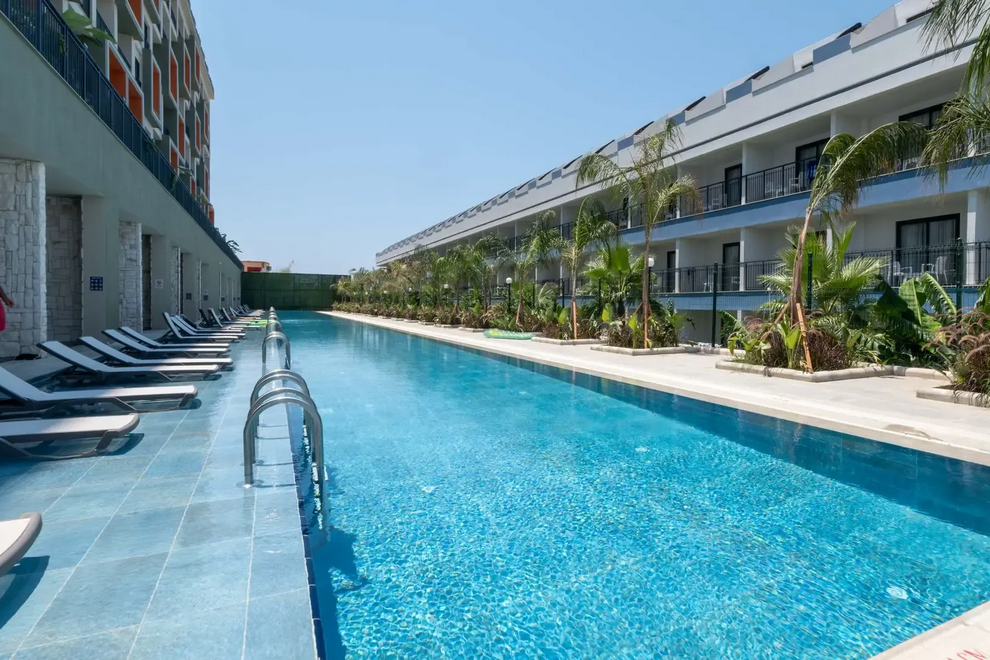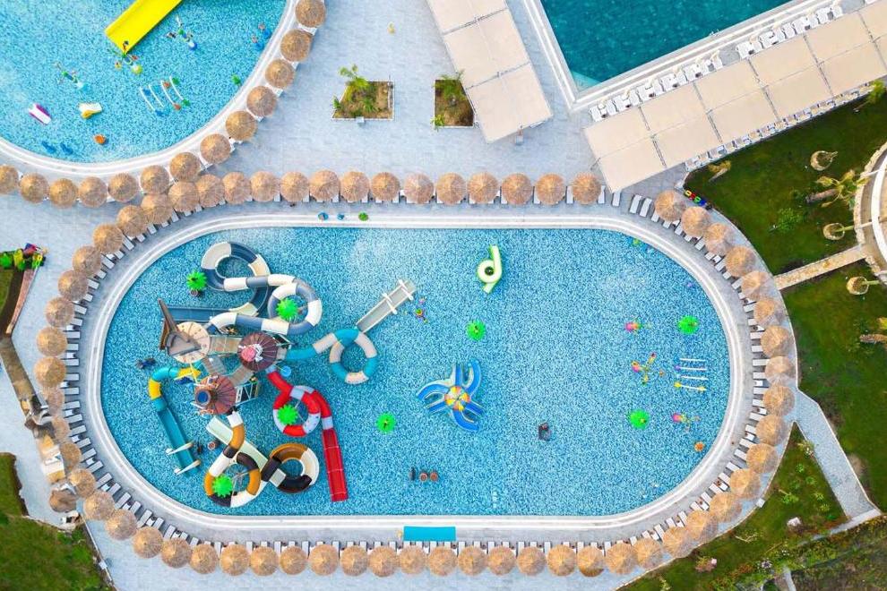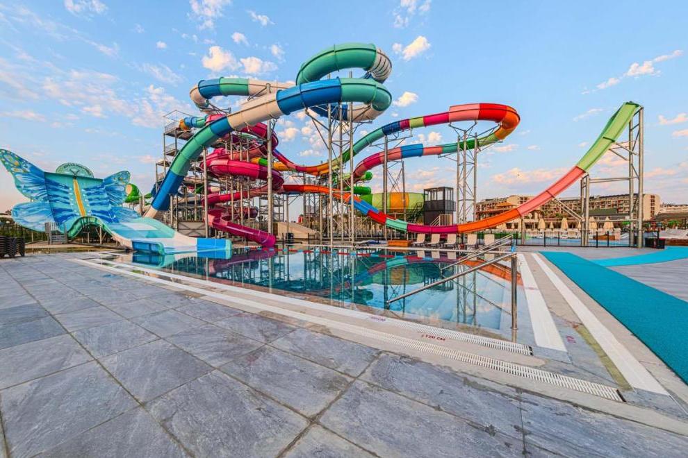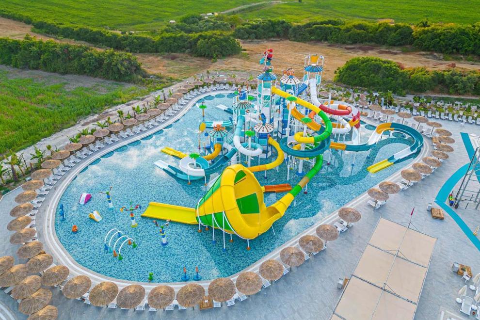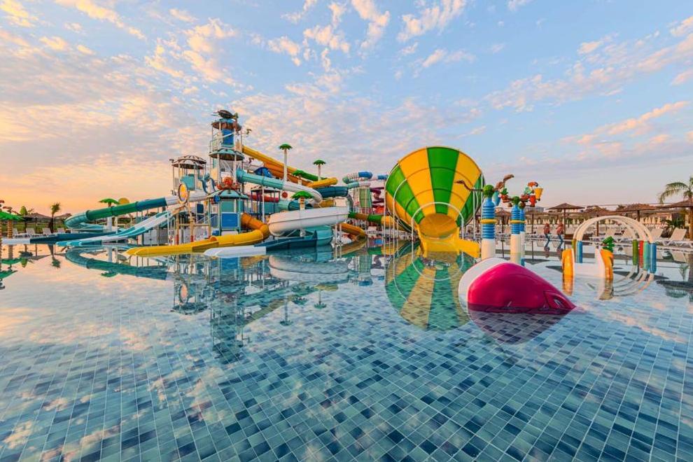 Собствен плаж с фин пясък и с плавен вход в морето, осигурен е безплатен шатъл на всеки 4 минути. На плажа има бар и снек-бар. Няколко басейна, Active Pool басейн, басейн само за възрастни (18+), голям аквапарк с 11 пързалки (по график), както и детски воден свят Dream Wonderland с два отделни аквапарка с по 7 пързалки, плитка зона (20 см) и детски басейн. Шезлонги, чадъри и плажни кърпи на плажа и при бсейните с ползват безплатно.