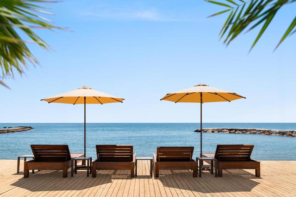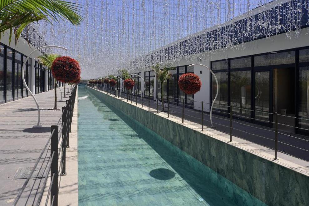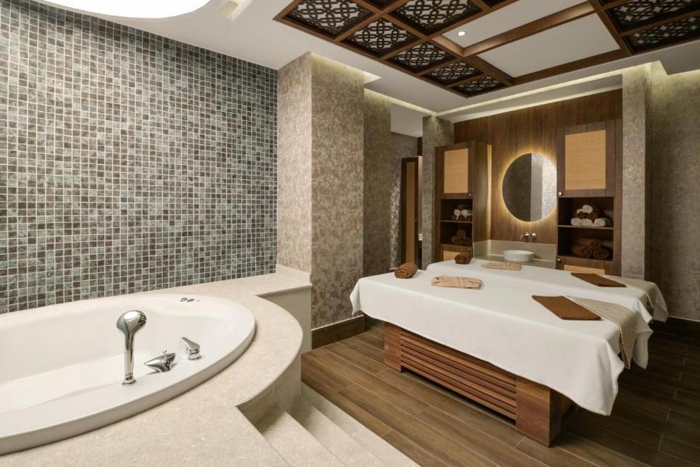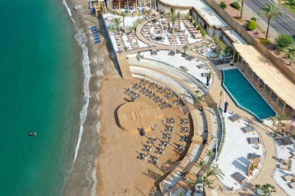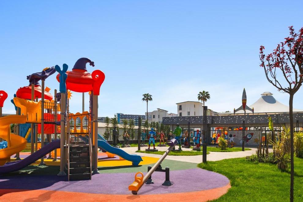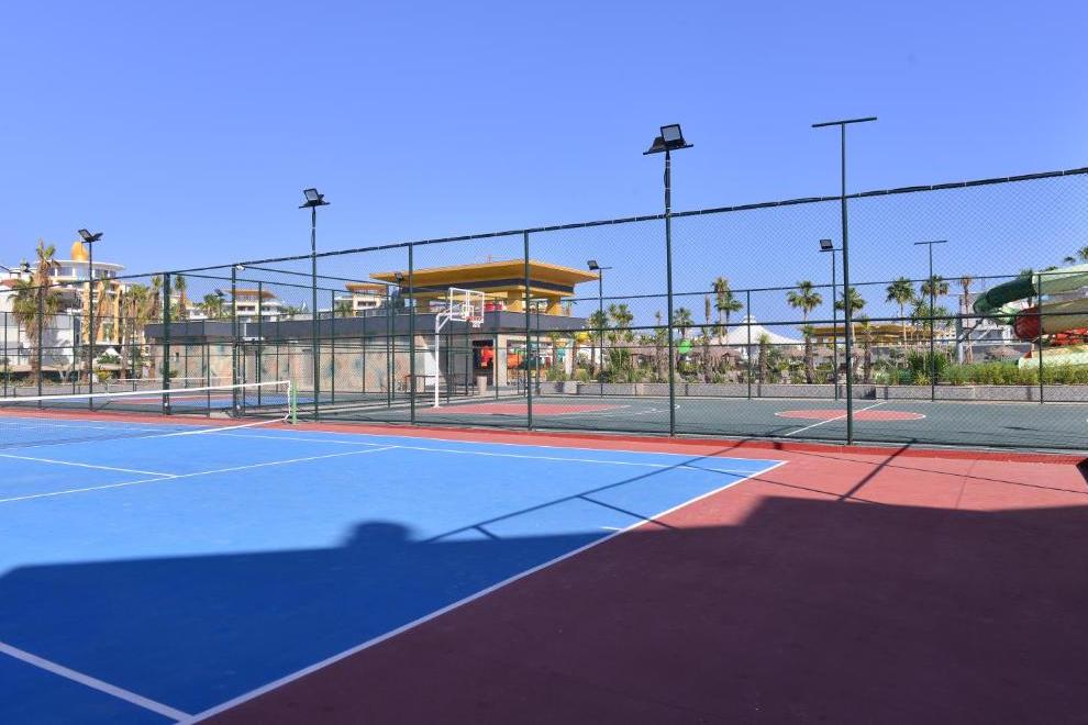 Собствен пясъчен плаж със ситни камъчета – на километър от сградата на хотела, осигурен е безплатен шатъл бус. Плажът е дълъг 125 метра и разполага със 120 шезлонга и 60 чадъра, има снек ресторант, кабини и тоалетни. Открит басейн Oasis с обща площ от 266 кв.м + 12,5 кв.м закрит басейн. Басейнът Survivor Park е с обща площ от 962 кв.м и включва един басейн и специално проектирана зона за плуване за деца. Аквапаркът разполага с 5 различни пързалки с обща площ от 727 кв.м и дълбочина на басейна е 1,55 см. Чадъри и шезлонги на плажа и при басейна се ползват безплатно.