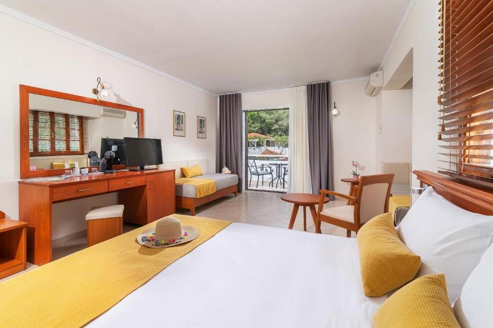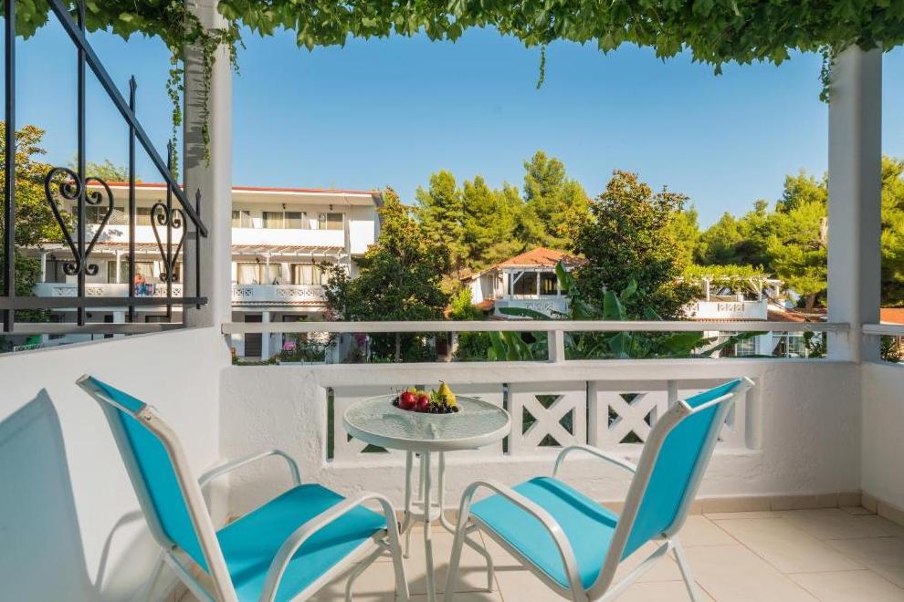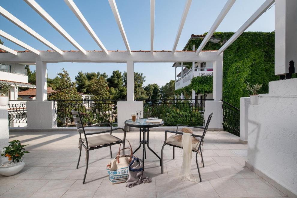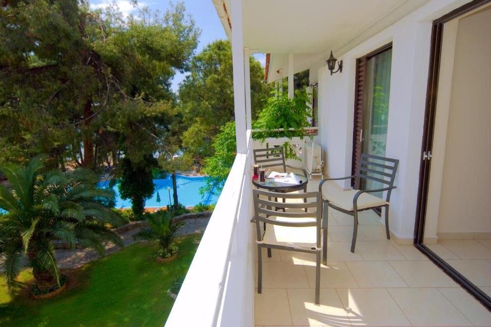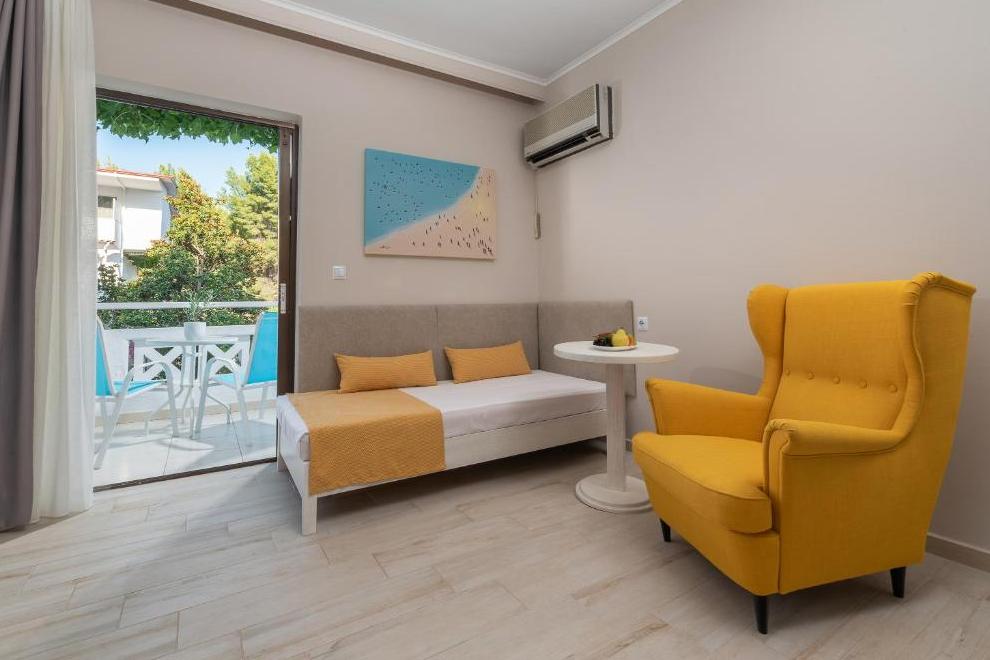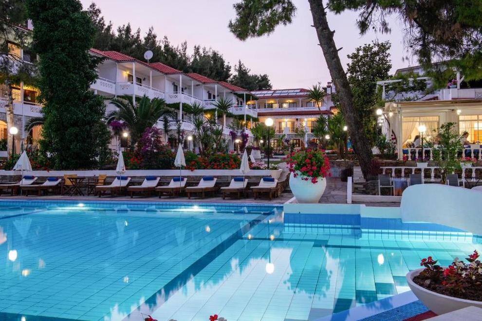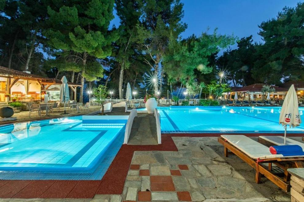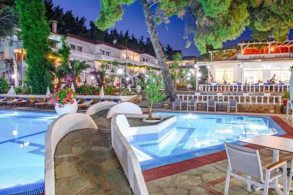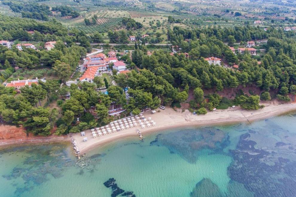 Хотелът се намира на брега на морето, сред добре поддържана зелена територия, където можете да се отпуснете с чаша леденостудена мента със спрайт. Центърът на селцето Никити е на 3 км, Метаморфоси е на 2,5 км.