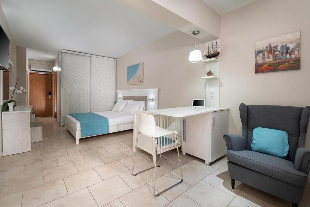 Junior Suites - едно помещение с открита планировка, състои се от спалня и всекидневна, двойно легло и диван, с площ 37-40 кв.м