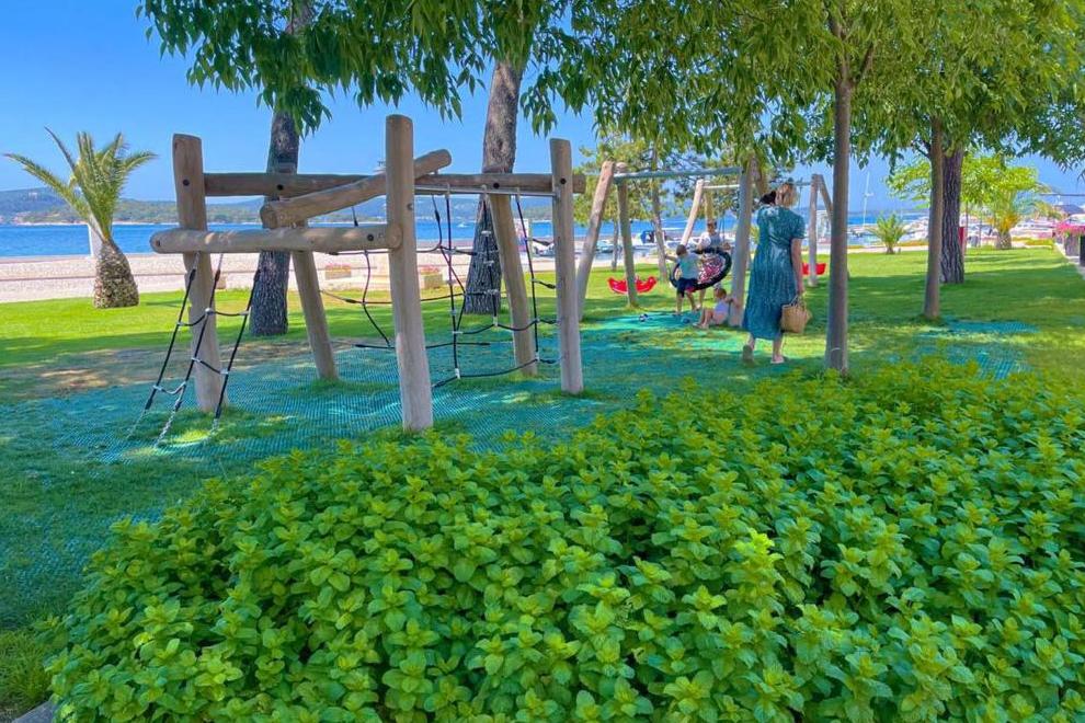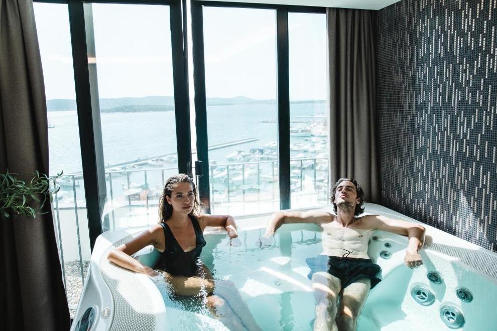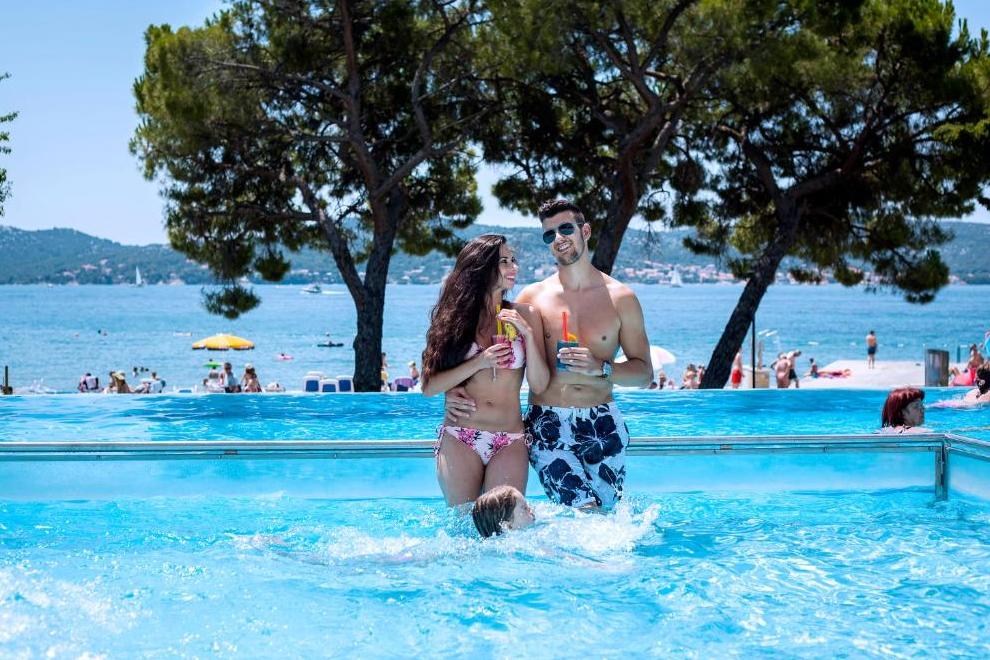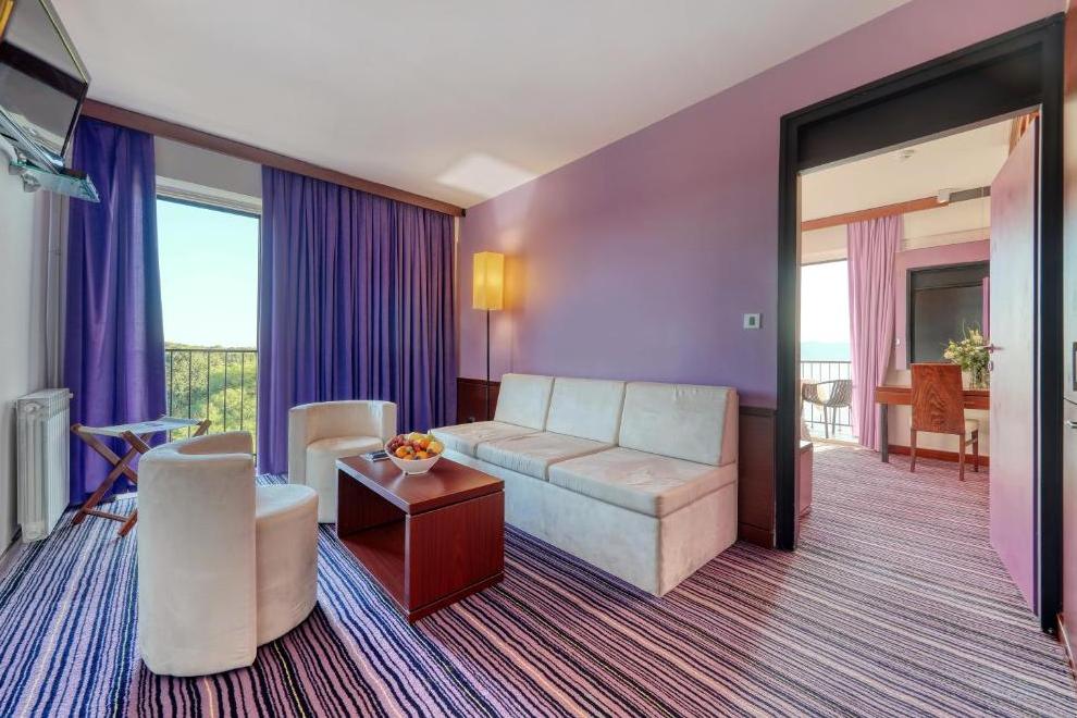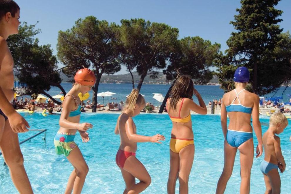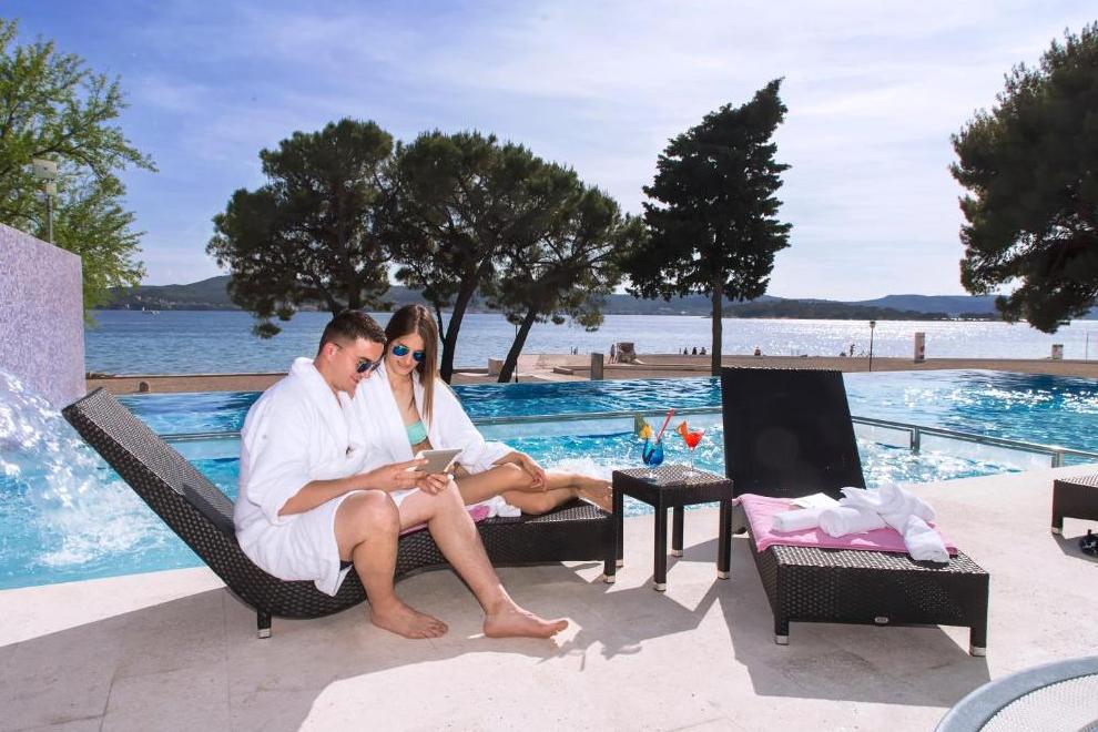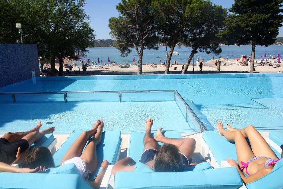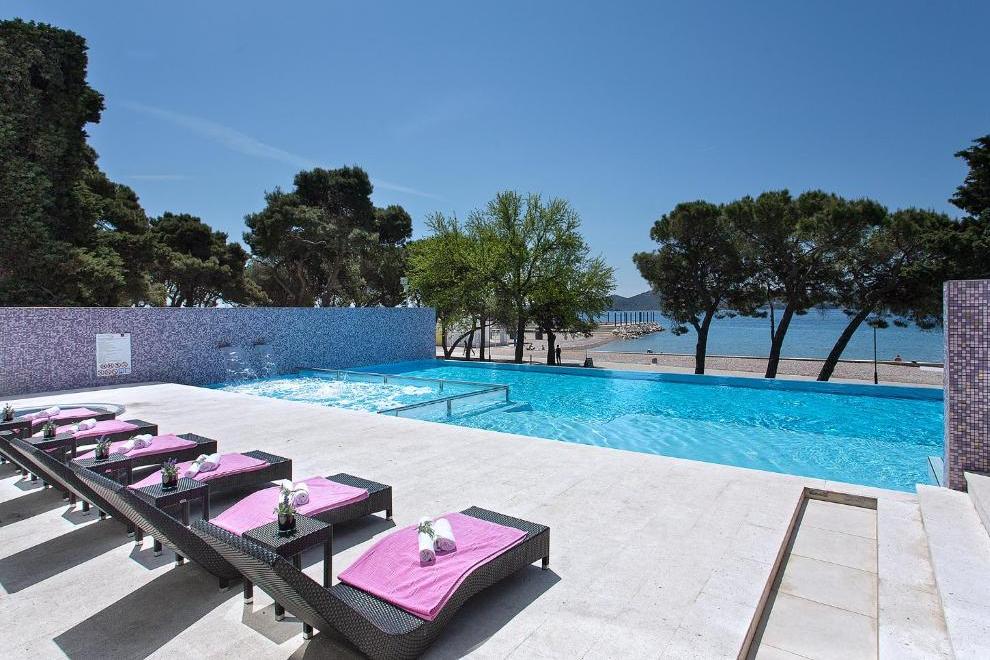 Прекрасният чакълест плаж "Дражица" е в непосредствена близост до хотела, има бетонна платформа. Плажната ивица предлага естествена сянка, шезлонги и чадъри под наем, тоалетни, душове и кабини за преобличане. Отопляем сладководен басейн е на разположение от средата на май до средата на октомври, оборудван със забавни водни съоръжения и безопасна зона за по-малките плувци. Гостите имат достъп и до закрит инфинити басейн и открит плувен басейн с олимпийски размери.