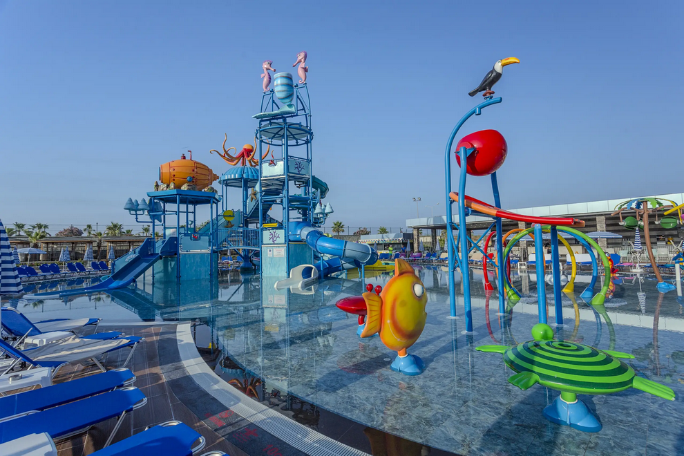 Плажът се намира на 250 м от хотела (минава се през подлез). На разположение на гостите 8 басейна, водни пързалки.