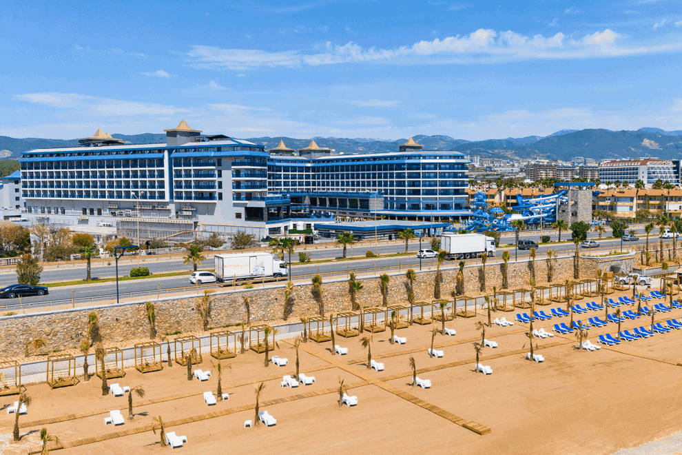 Хотелът, който отвори врати през 2024 г., се намира на 18 км от Алания, на 100 метра от морето в района на Търкс, известен със своите пясъчни плажове. Международното летище Анталия отстои на 90 км.