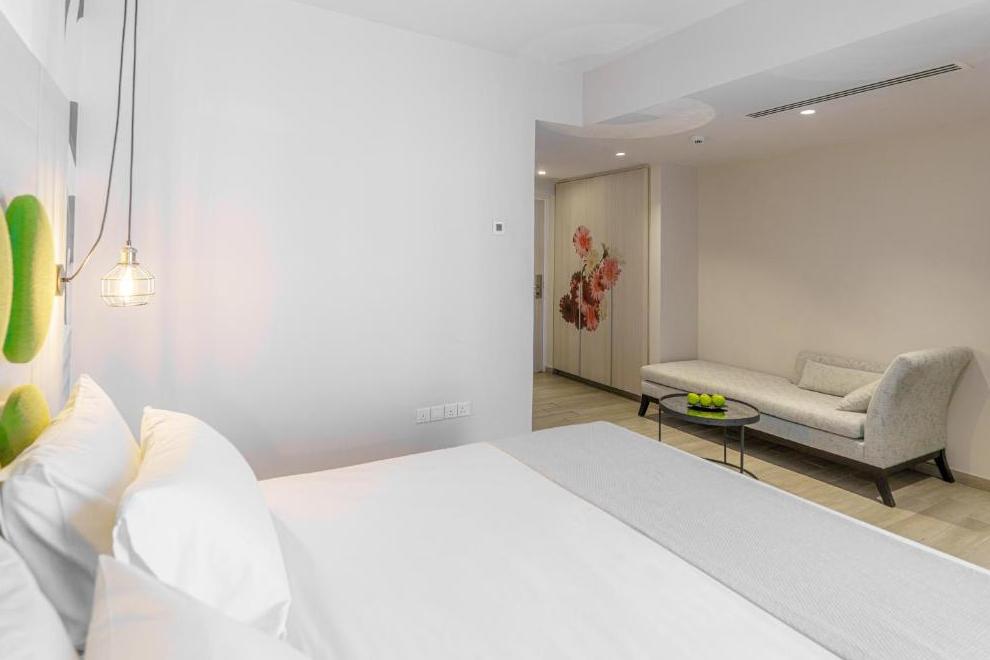 Хотелът се състои от една основна 4-етажна сграда и 4 допълнитлни корпуса, в които са запределени 32 студиа и 134 апартамента. Те са оборудвани с климатик, плоскоекранен телевизор, мини хладилник, сет за кафе/ чай, бюро, сейф, баня с душ, сешоар, балкон. Апартаментите сас напълно оборудвани купненски боксове. Детски легла и бебешки кошарки - при поискване.