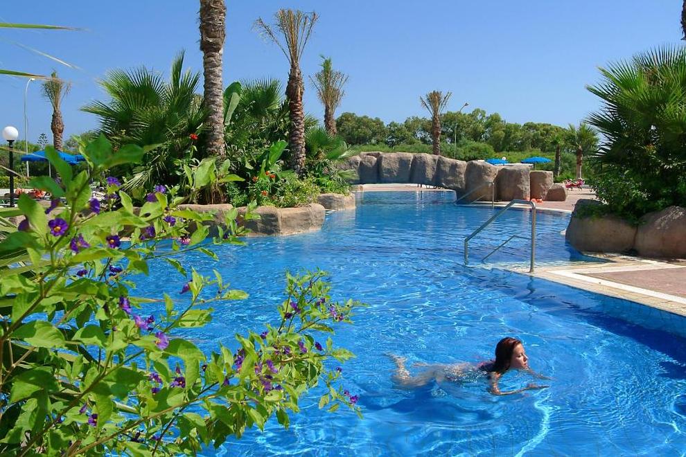 Хотелът е само на 150 м от популярния плаж Ниси, а хотелът изкушава с два открити басейна и един вътрешен басейн.