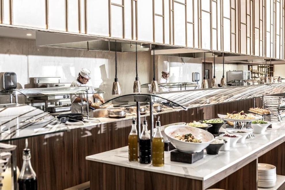 На разположение на гостите са ресторантите: Nikkei - удивително съчетание от японска и перуанска кухня; Theros All Day Dinning Bistro - богат избор от перфектно отлежали стекове, ръчно нарязани на място от опитни месари, плюс разнообразие от други ястия за всеки вкус (работи само за вечеря); Mediterranean Buffet Restaurant - сервира се елегантен бюфет за закуска, както и вечеря на бюфет с голямо разнообразие от ежедневни тематични вечери, местна храна, салатен бар, детски бюфет и десерт. Освежаващи напитки се поднасят в 4 бара.