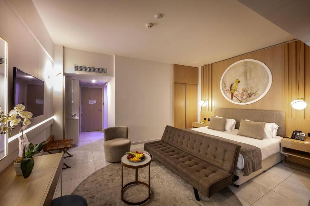 Хотелът посреща гостите си в комфортни и стилно обзаведени стаи, разполагащи с климатик, голямо легло (кралски размер) и разтегателен диван, детски кошарки и допълнителни легла - при поискване, телефон, телевизор, минибар, машина за чай/ кафе, сейф, бюро, комплект ютия с дъска за гладене и преса за панталони, баня с душ/ вана, сешоар, пантофи, халат, безплатни тоалетни принадлежности, козметично огледало, балкон или тераса, Wi-Fi.