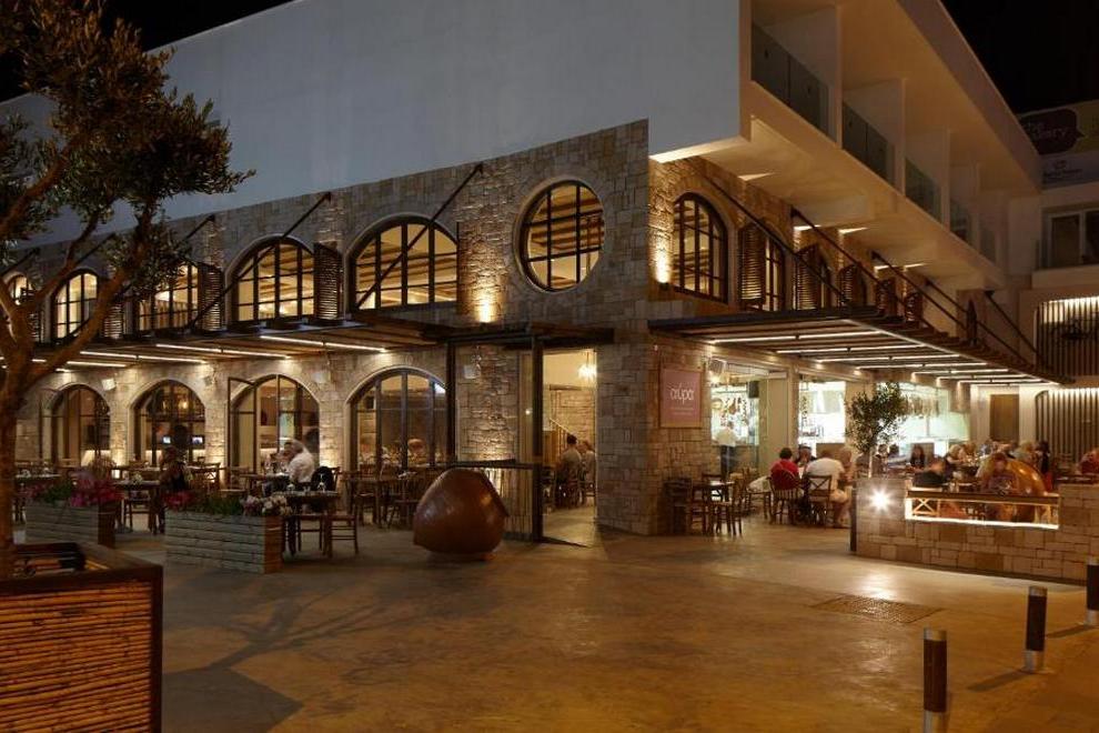 На разположение на гостите са основния ресторант Melpo Antia и още три ресторанта: Avra, който предлагат местна кухня, Frankie’s Bar & Grill е модерен ресторант с международна кухня, специализиран в пържоли и бургери, и японския ресторант Megu. Кафене Gloria Jean’s предлага ароматно кафе, а пекарната - торти, закуски и прясно изпечен хляб.