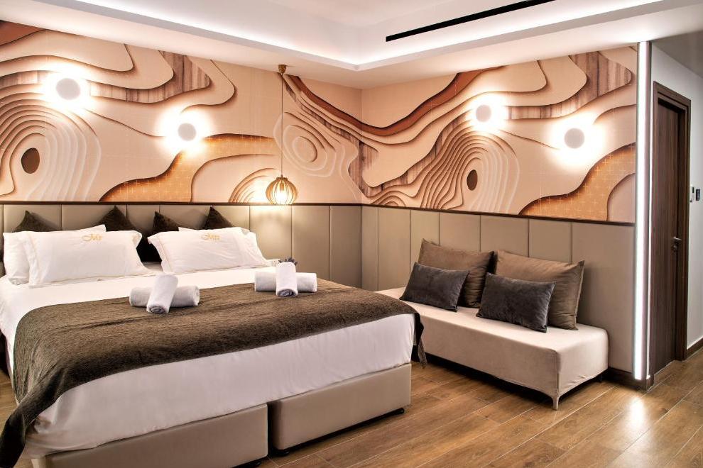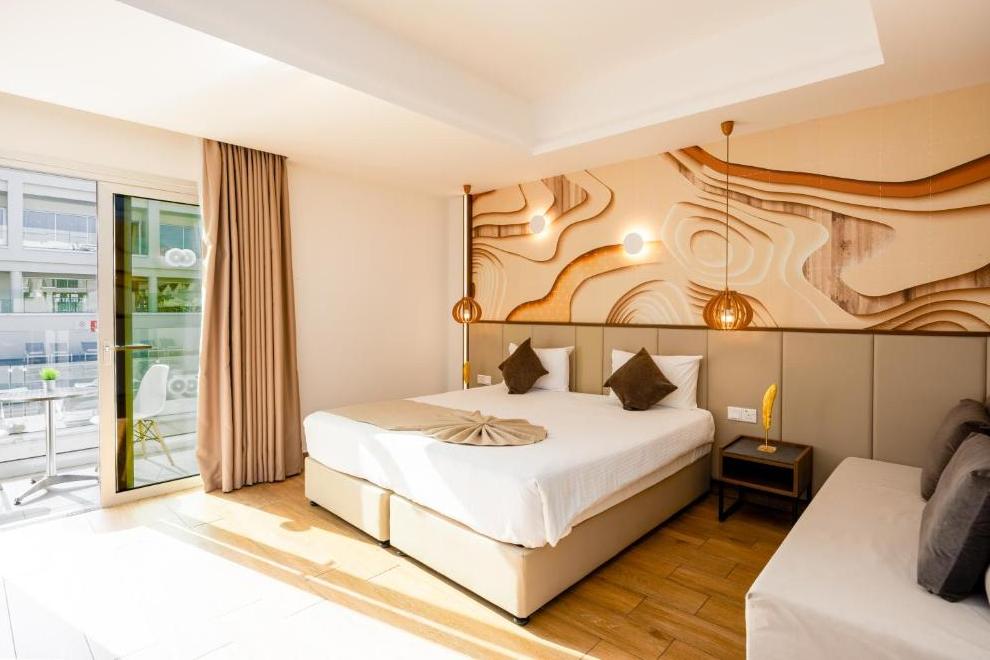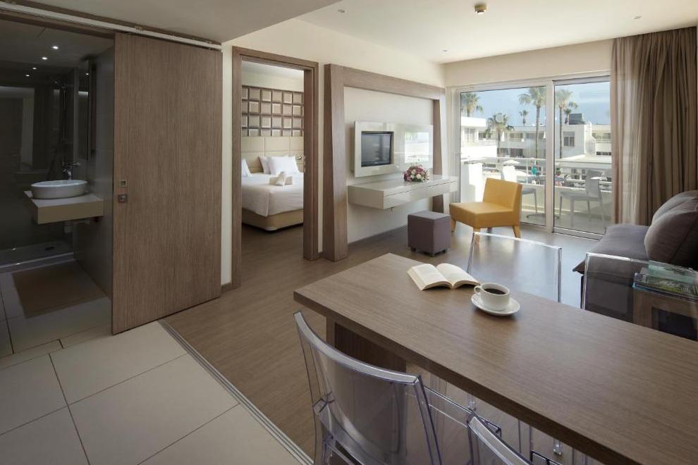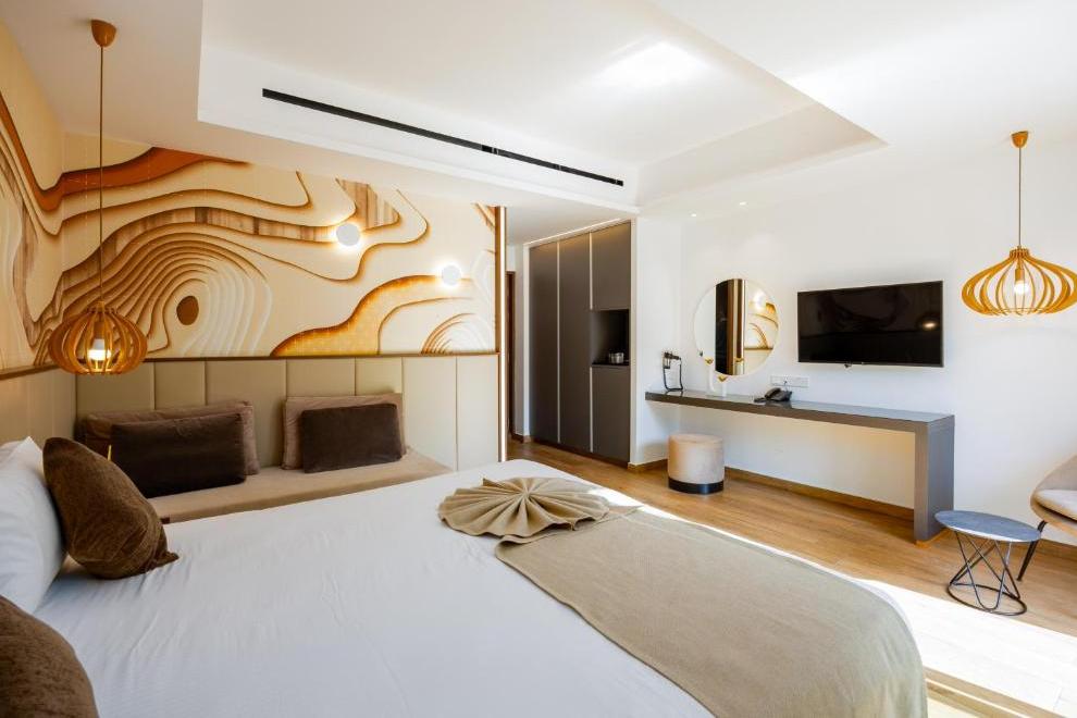 Хотелът посреща гостите си в 140 климатизирани стаи, по-голямата част от стаите и апартаментите са построени вътрешно около двата басейна, създавайки усещане за уединение и спокойствие, разполагат с двойно легло, разтегателен диван, налични са отделни спални. Те са обзаведени с телевизор, радио, телефон, хладилник, машина за приготвяне на чай/ кафе, писалище, сейф, баня с душ/ вана, сешоар, чехли, халати, безплатни тоалетни принадлежности, балкон или тераса, Wi-Fi. Бебешки креватчета или кошари - при поискване.