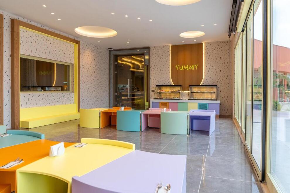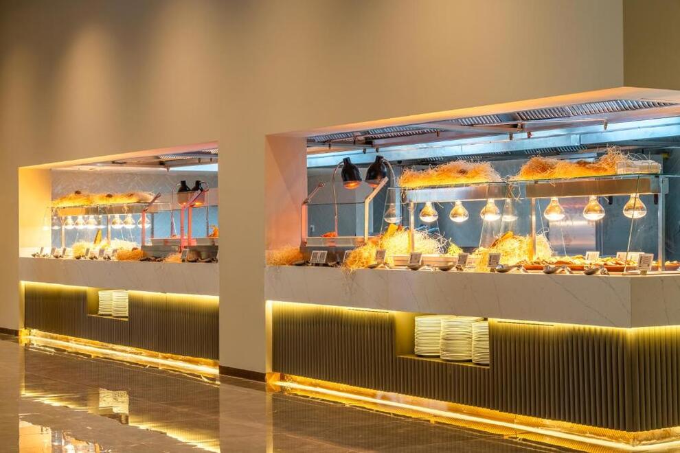 На разположение на гостите са основен ресторант, 3 а`ла карт ресторанта: рибен, турски, италиански (1 безплатно посещение на един от ресторантите при минимум 7 нощувки) и Gusto 24/7 ресторант с интернационална кухня. Има още сладкарница и снек ресторант. Разнообразни напитки се предлагат в 5 бара, един от които работи денонощно.