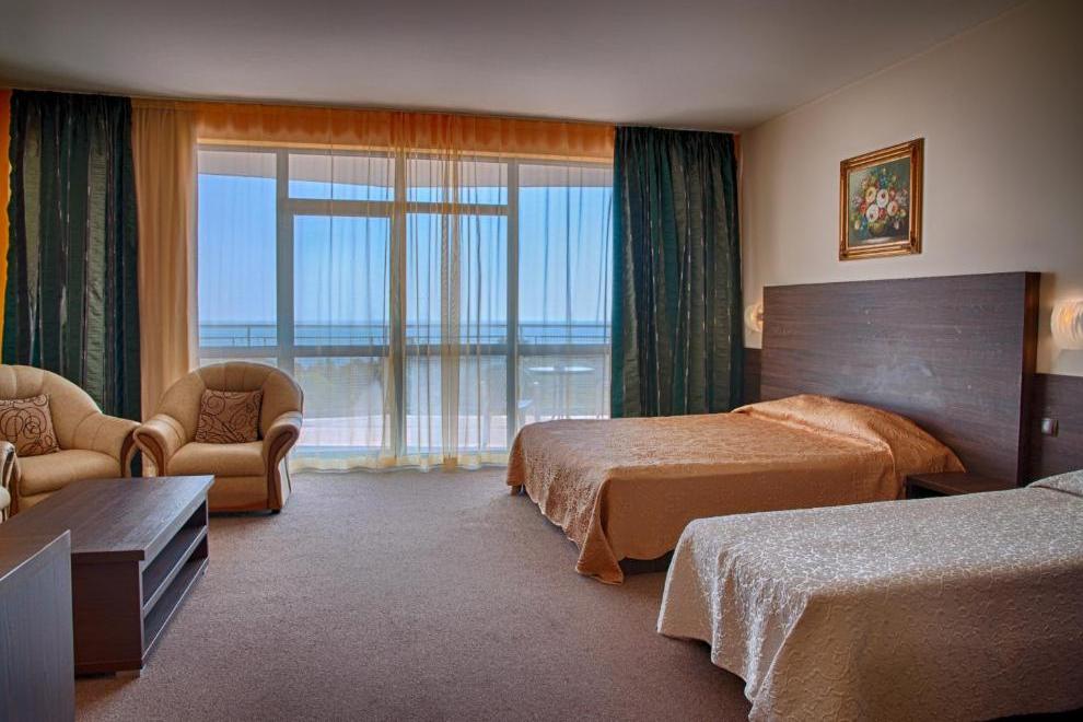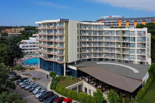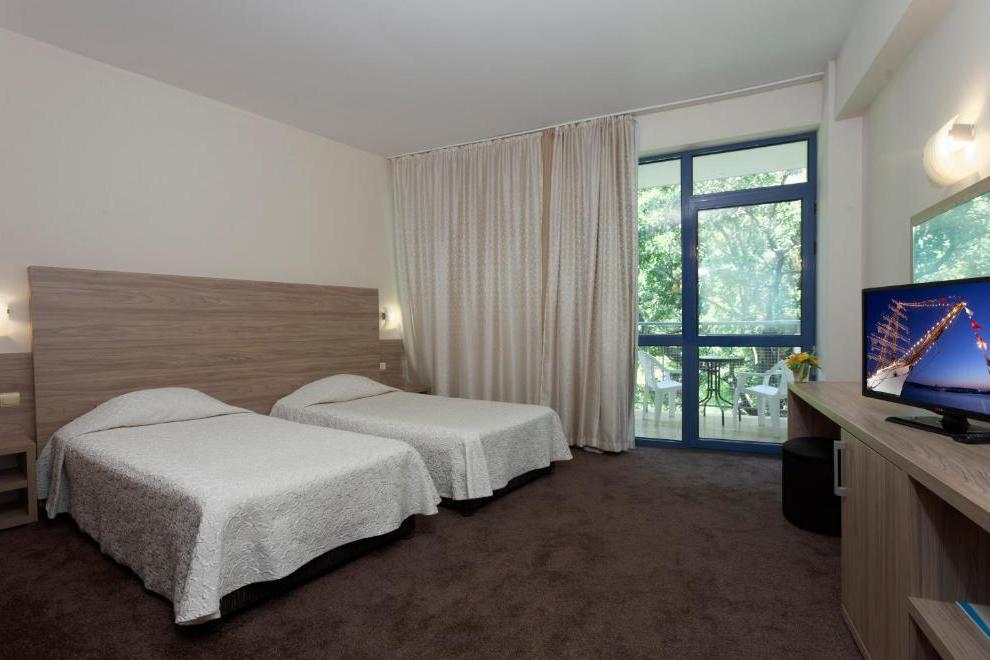 Хотелът се намира след зеленината на природен парк и е само на 200 м от плажа на Златни пясъци.