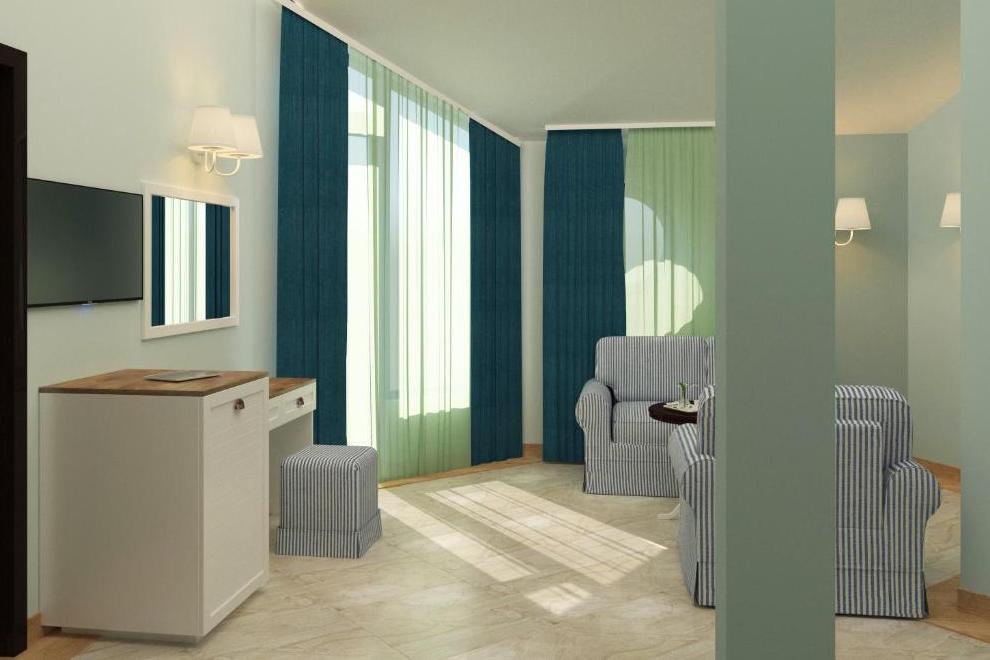 Хотелът посреща гостите си в 23 двойни стаи, 2 студиа, 6 тройни стаи и 4 апартамента. Климатизираните стаи са оборудвани с телевизор с плосък екран със сателитни програми, хладилник, гардероб, тоалетна маса и бюро, кафе масичка, баня с безплатни тоалетни принадлежности и сешоар.