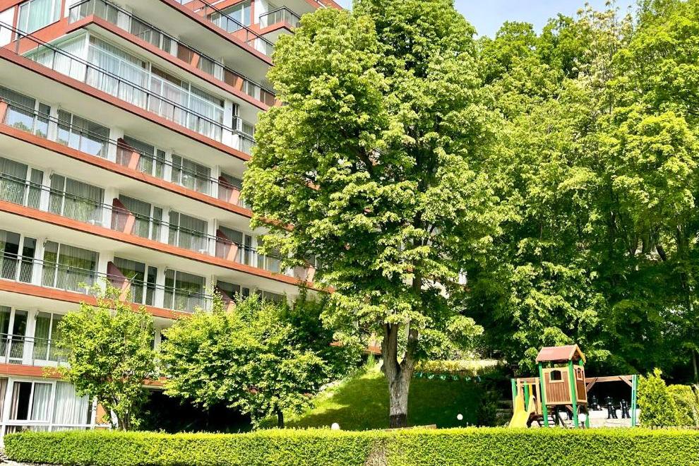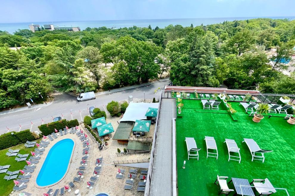 Хотелът е разположен сред зеленина, близо до частен плаж в Златни пясъци.