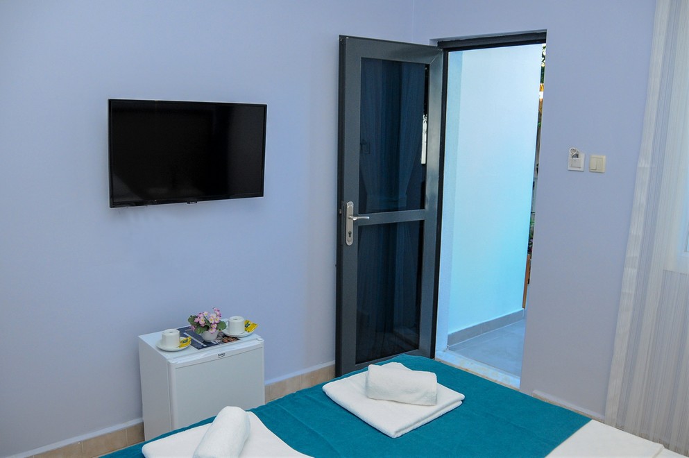 Хотелът се състои от една 3-етажна сграда, в която са разпределени 66 климатизирани стаи: 38 standard rooms (макс. 2+1 чов., площ 16-20 кв.м); 25 двустайни family room (спалня с врата, хол с мека мебел, макс. 4 чов, площ .25 кв.м). Те са оборудвани с индивидуален климатик, сателитна телевизия, минибар, баня с душ, сешоар, балкон. Стаите се почистват всеки ден, спалното бельо се сменя два пъти седмично.