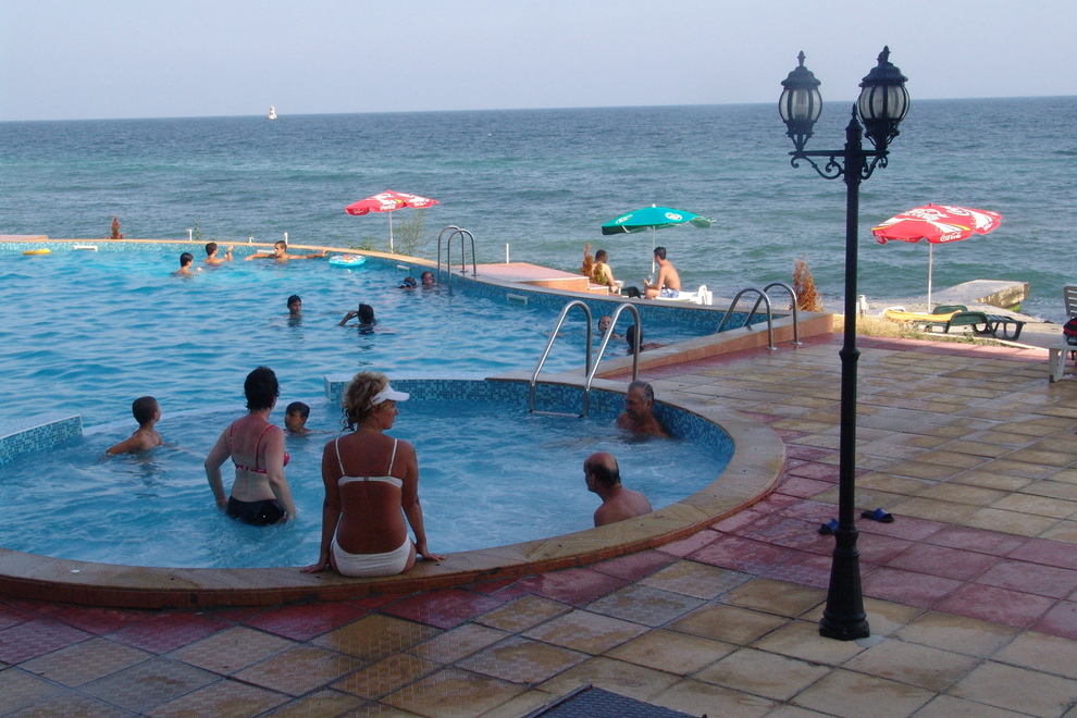 На разположение на гостите са две рецепции с два лоби бара, основен ресторант с морска панорама, конферентна зала, зала за хранене – тип шведска масa, коктейл и билярд клуб, обменно бюро, лечебен комплекс, открит и закрит басейн с морска вода, магазин за сувенири.