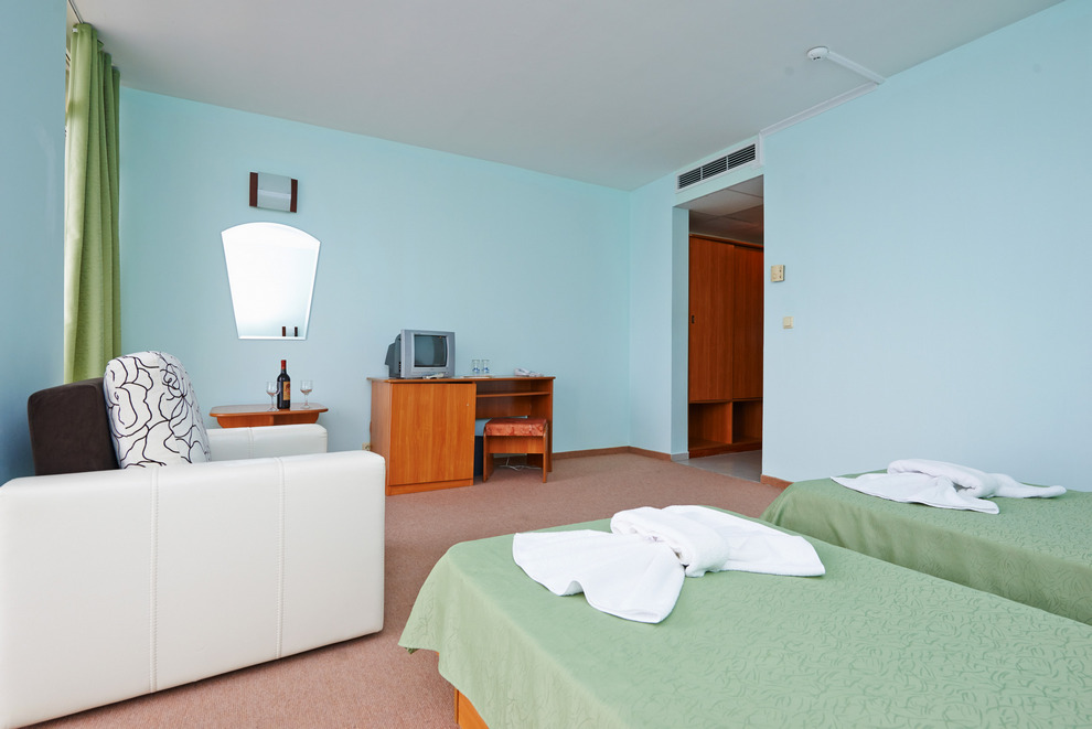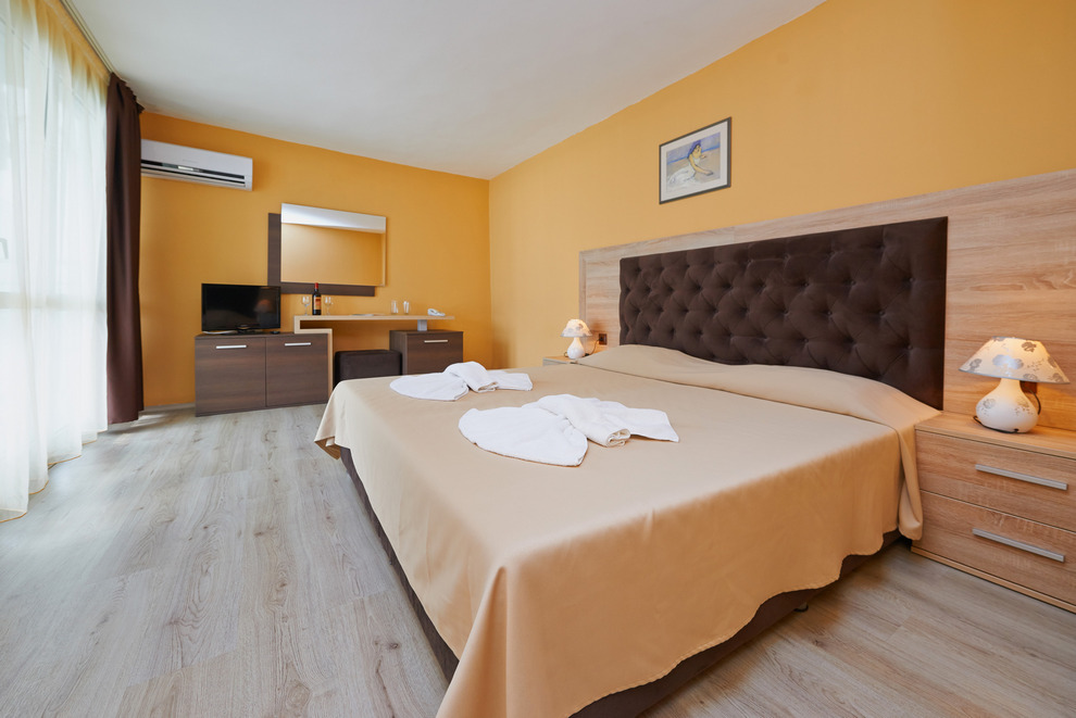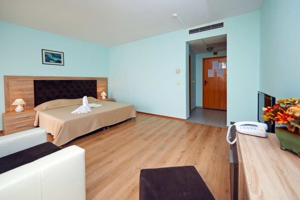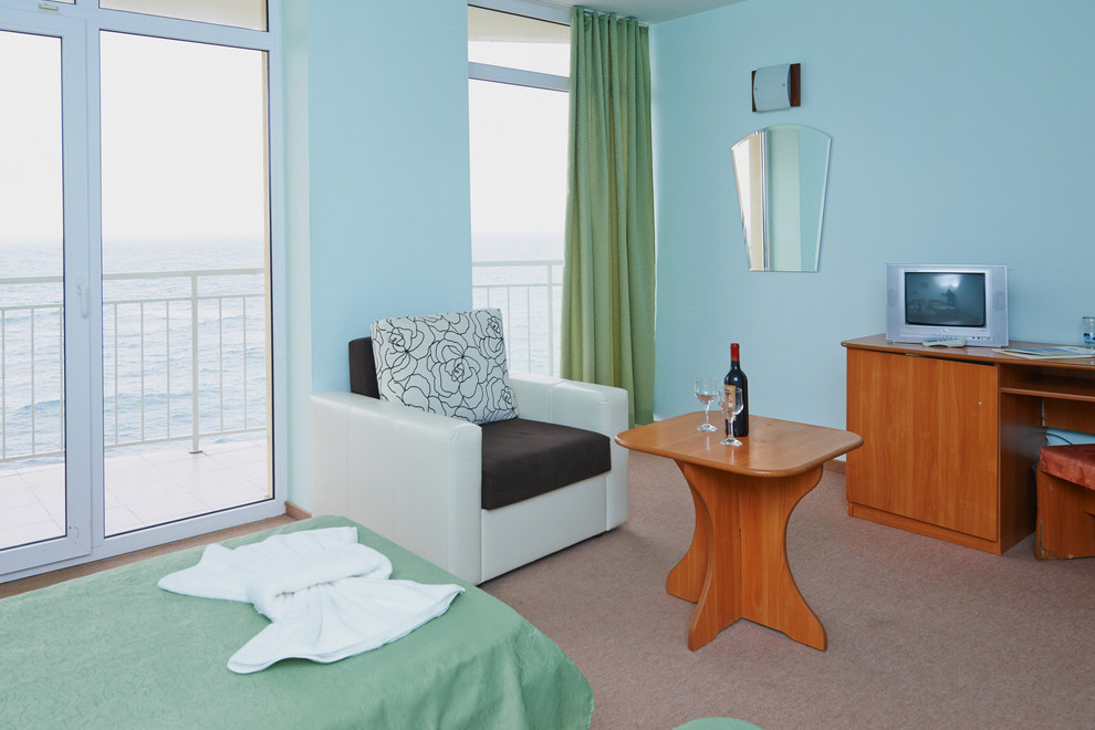Хотелът приема гостите си в разполага с 235 стаи .Двойните стаи са просторни, обзаведени с необходимите съвременни удобства – сателитна телевизия , телефон , малък хладилник , централен климатик и санитарен възел с душ. Всички стаи разполагат с балкони, повечето с изглед към морето. В този тип стаи може да се постави до 2 допълнителни сгъваеми легла. Размерите на стаите са между 16-20 м2. Двойна стая крило Поморие бийч – реновирани са просторни обзаведени с необходите съвременни удобства –балкон с морски изглед, сателитна телевизия , телефон , малък хладилник , централен климатик и санитарен възел с душ. В този тип стаи може да се постави до 2 допълнителни сгъваеми легла. Размерите на стаите са между 16-20 м2. Апартаментите притежават всички удобства на двойните стаи : собствен санитарен възел с душ, телевизор със сателитна телевизия, телефон , хладилник, климатик. Състоят се от спалня и хол/ отворен план без врата помежду им/, в който е обособен кът с мека мебел (разтегателен диван с възможност за допълнително настаняване) и кафе масичка. Всички апартаменти са с балкони и изглед към морето с невероятна морска панорама към Бургаския залив, или Созопол.